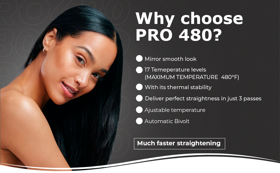 اتو مو Pro 480 یک محصول ایده آل است و برای درمان شیمیایی و کراتینه توصیه می شود. تنظیمات دما که دارای 17 سطح است به شما اطمینان می دهد که همیشه موهای مشتری خود را در مناسب ترین دما صاف کنید. قدرت این محصول باعث می شود که نتایج عالی، افزایش عملکرد تجاری و فراتر از انتظارات مشتری را تضمین کنید.