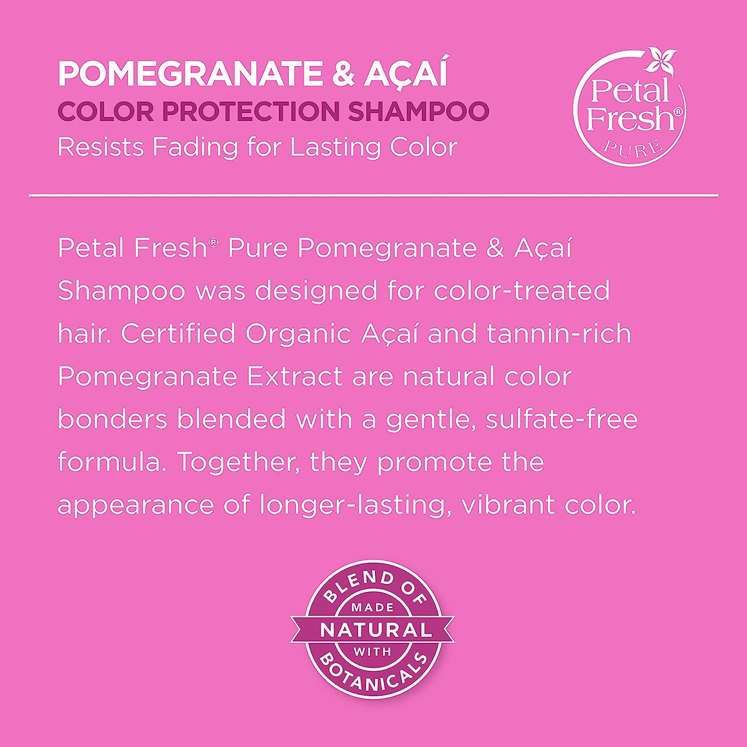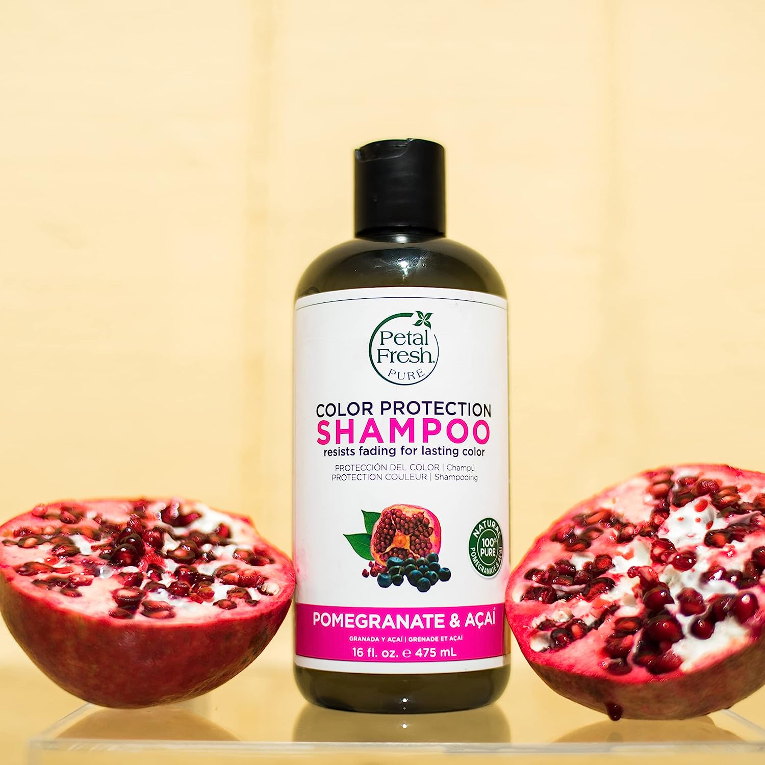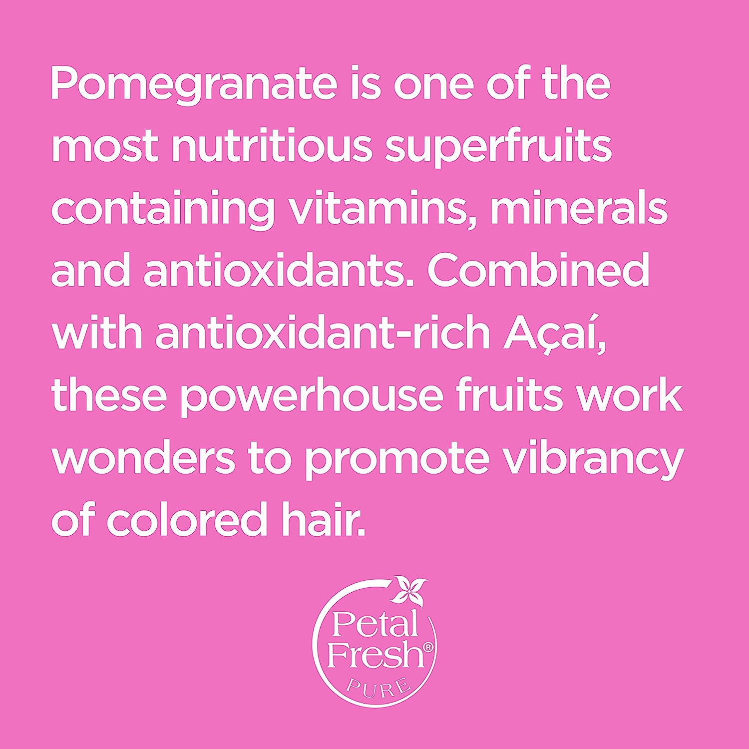 شامپو موهای رنگ شده پتال فرش انار و نخل آسای Petal Fresh Color Protection حاوی فرمول ملایم بوده و از مات شدن رنگ مو جلوگیری می کند. عصاره های ارگانیک انار و نخل آسای محافظت کننده رنگ دانه های مو و درخشان کننده رنگ مو می باشند.