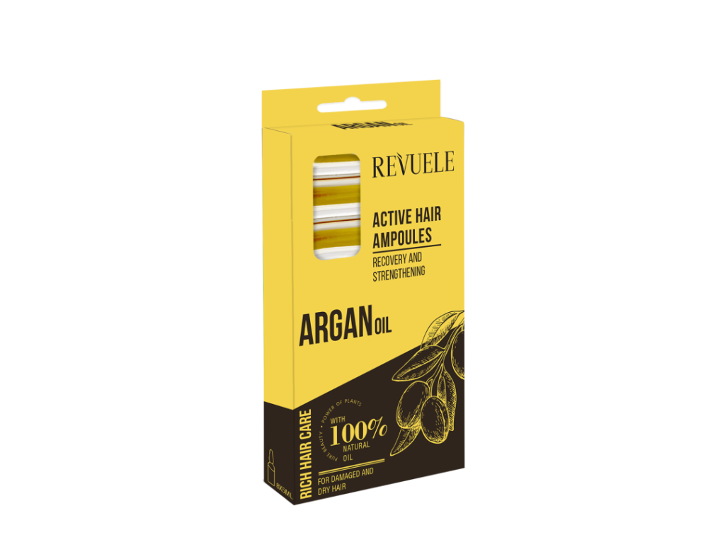 آمپول مو اکتیو روغن آرگان رویول REVUELEمراقبت و بازیابی عمیق موهای آسیب دیده را ارائه می دهد.
