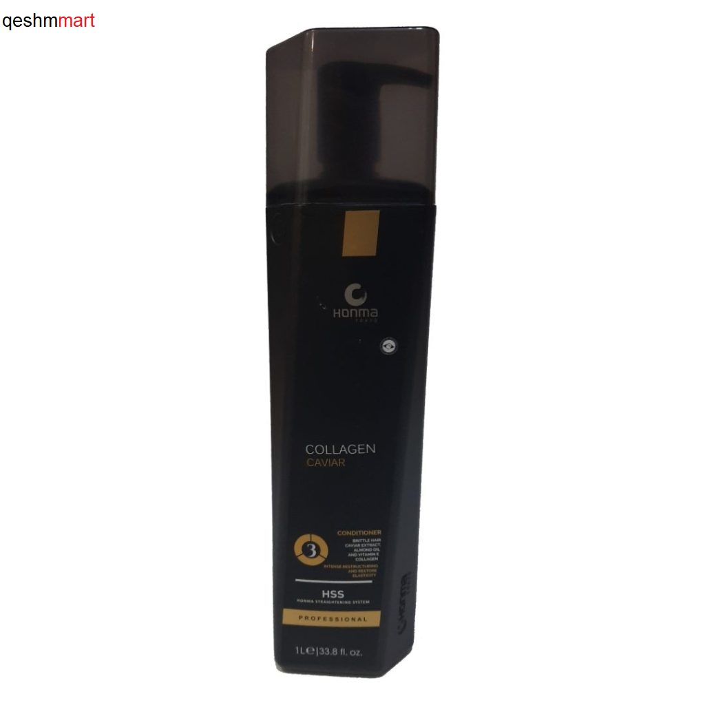 کاندیشنر خاویار هونما HONMA TOKYO Collagen Caviar Hair Conditioner حجم 1000میلی لیتر موهای شما سزاوار ارزشمندترین لطافت دنیاست. سحر و جادو و افسون خاویار با طعم ویژگی های منحصر به فرد آن ساخته می شود و هر فرد به روش های مختلف احساس می کند. نجیب و نادر، گمان می رود که این ایرانیان بودند که شروع به تولید کردند. با ارزش ترین خوراکی دنیا آشپزی را رها کرد و به دنیای لوازم آرایش رفت. با خواص بسیار غنی که قادر به تغییر شکل مو است. دانشمندان معتقدند   که خاویار دارای محتوای بالایی از خواص است، در بخش غیرمعمولی که قبلاً دیده شده است. این به دلیل این واقعیت است که ترکیب شیمیایی آن شبیه به سلول های ما است. دارای گلوکیدها، پروتئین ها، لیپیدها، مواد معدنی و اسیدهای آمینه است، یعنی یک ترکیب فوق العاده قوی در یک واحد فعال است. ویتامین‌ها و مواد معدنی موجود در خاویار به سلول‌های مو کمک می‌کند تا تعادل طبیعی پیدا کنند و موها را هیدراته می‌کنند بدون اینکه سنگین شوند و باعث می‌شوند مواد مغذی طولانی‌تر در فیبر مو باقی بمانند. نتیجه یک بازسازی شدید، بازیابی خاصیت ارتجاعی طبیعی تارها، پایان دادن به ظاهر موهای شکافته شده است. نرم کننده کلاژن خاویار برای موهای شکننده و الاستیک ساخته شده است. کوتیکول های تارها مو  را می بندد و باعث تقویت و حفظ کامل آن می شود. عصاره خاویار، روغن بادام، کلاژن گیاهی.