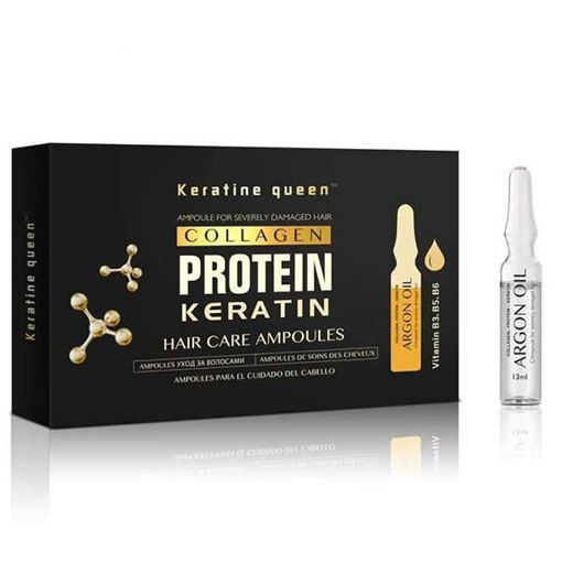 ویال آمپولی مو کراتین کویین Keratin queen فعال کننده مجدد رویش مو و همچنین تقویت کننده وجلوگیری از ریزش موهای سر می باشد که به ضخامت موها نیز خواهد افزود. ریزش مو مشکلی است که خیلی ها را نگران کرده و افراد زیادی را وادار به پیگیری درمان نموده است. هرکسی در طول روز چند تار مو را از دست می دهد و در عوض چند تار مو بر روی سرش رشد می کند این سیکل طبیعی مو به حساب می آید و هیچ نگرانی را ایجاد نمی کند تا زمانی که این ریزش ها بیشتر شوند و حد و اندازه حجم موها کم شوند. اما ویال تقویت کننده موی کراتینه کویین محلولی گیاهی جهت تقویت ریزش مو و افزایش ضخامت تارهای مو می باشد. این محلول که در قالب آمپولهای شیشه ای بوده حاوی مواد موثری مانند جنسینگ کره ای، اسید آمینه های میتونین، آلائین و سیستئین، روغن کرچک هیدروژنه، لینالول، نعناع و سرین و مواد دیگر می باشد.