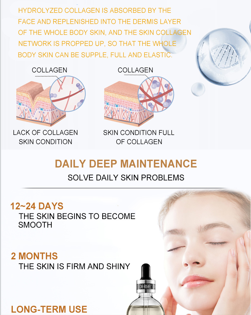 سرم کلاژن دکترراشل باعث از بین رفتن علائم پیری، سفت شدن صورت و رطوبت پذیری در آن میشود.