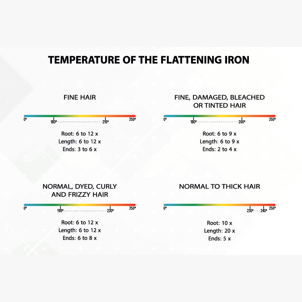 .اگر موی مشتری شما رنگ شده ولی سالم است حرارت را روی ۲۳۰ تنظیم کرده و بین ۱۵ تا ۲۵ بار اتو کشی کنید
