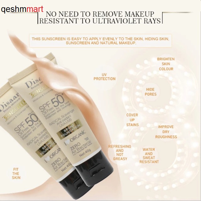 DISAAR Sunscreen Bronz Foundation SPF50+ PA+++ Oil Free Protection Sunblock 40g
