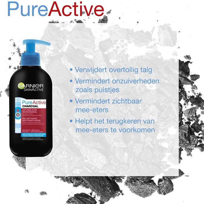 ژل شوینده صورت پوست چرب گارنیر حاوی شارکل Garnier Pure Active Intensive حاوی عصاره های طبیعی جهت پاک کنندگی پوست های چرب و پاکسازی جوش های سرسیاه و مقابله با ایجاد جوش می باشد. ژل واش گارنیه حاوی سالیسیلیک اسید به عنوان آنتی باکتریال جهت مقابله با جوش و جلوگیری از ایجاد جوش، عصاره بلوبری حاوی اسید میوه و سرشار از آنتی اکسیدان و ذغال فعال جهت جذب آلودگی ها، چربی سبوم و ناخالصی های پوست است. این فرمول همچنین حاوی ذرات پاک کننده با دو سایز متفاوت جهت پاک کنندگی پوست چربی سبوم و پاکسازی منافذ پوست است و نتیجه پوستی مات، تمیز و محافظت شده می باشد.