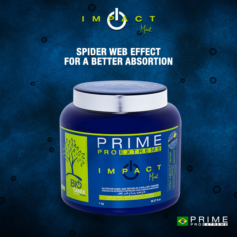 ماسک مو ایمپکت پرایم ( ماسک پرایم عنکبوتی ) قابل ادغام با کراتین و بوتاکس مو است که موجب افزایش ماندگاری مواد در مو می شود و دارای قابلیت مخملی کردن موهای آسیب دیده است. ایمپکت پرایم سرشار از ویتامین های متنوعی چون A,B,C و مواد معدنی متنوعی چون پتاسیم و کلسیم است. این ویتامین ها و مواد تشکیل دهنده در این ماسک قابلیت ترمیم بسیار قوی گره ها و کوتیکول های مو را دارد .