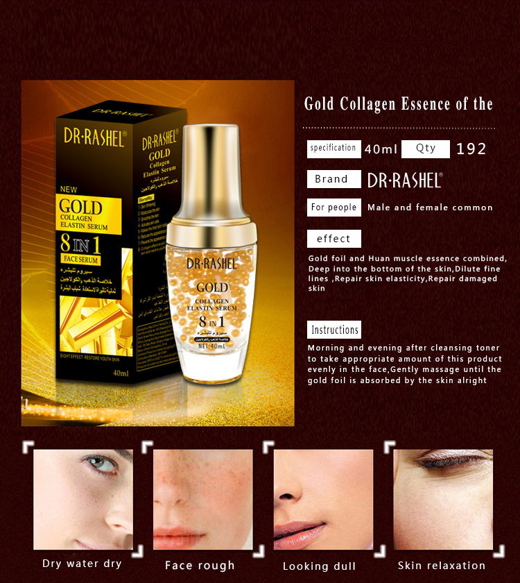 سرم صورت طلای دکتر راشل با انجام 8 عمل مهم و اساسی بروی پوست صورت ،کلاژن مورد نیاز پوست را ساخته و لیفتینگ آن را به بهترین شکل ممکن انجام می دهد
