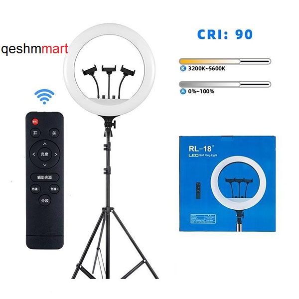 رینگ لایت مدل RL18 عکاسی 18 اینچ همراه با سه پایه 2.1 متری