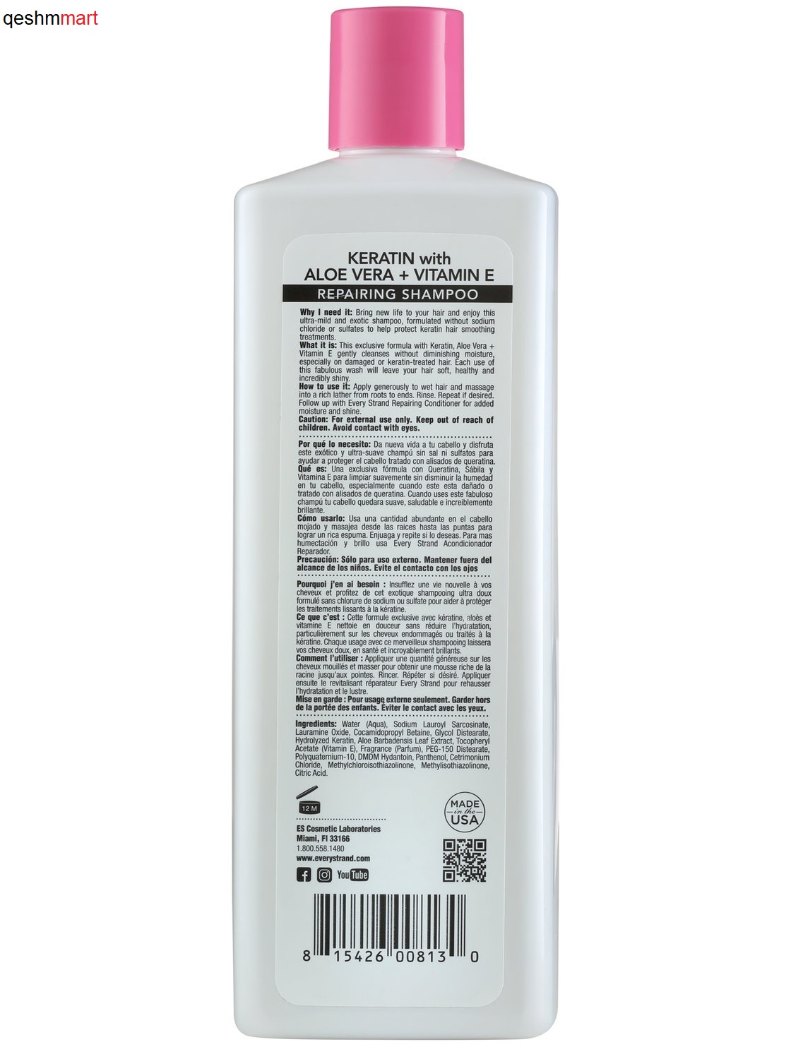 شامپو کراتینه ترمیم کننده آلوئه ورا اوری استرند Every Strand Keratin غنی شده با کراتین هیدرولیز شده به همراه آلوئه ورا و ویتامین E می باشد. شامپو کراتینه اوری استرند دارای فرمول فوق ملایم و بدون سدیم کلراید (نمک) و بدون سولفات بوده و برای موهای کراتینه نیز مناسب است. شامپو ترمیم کننده اوری استرند ضمن ترمیم موهای آسیب دیده موها را فوق العاده درخشان و نرم می کند.