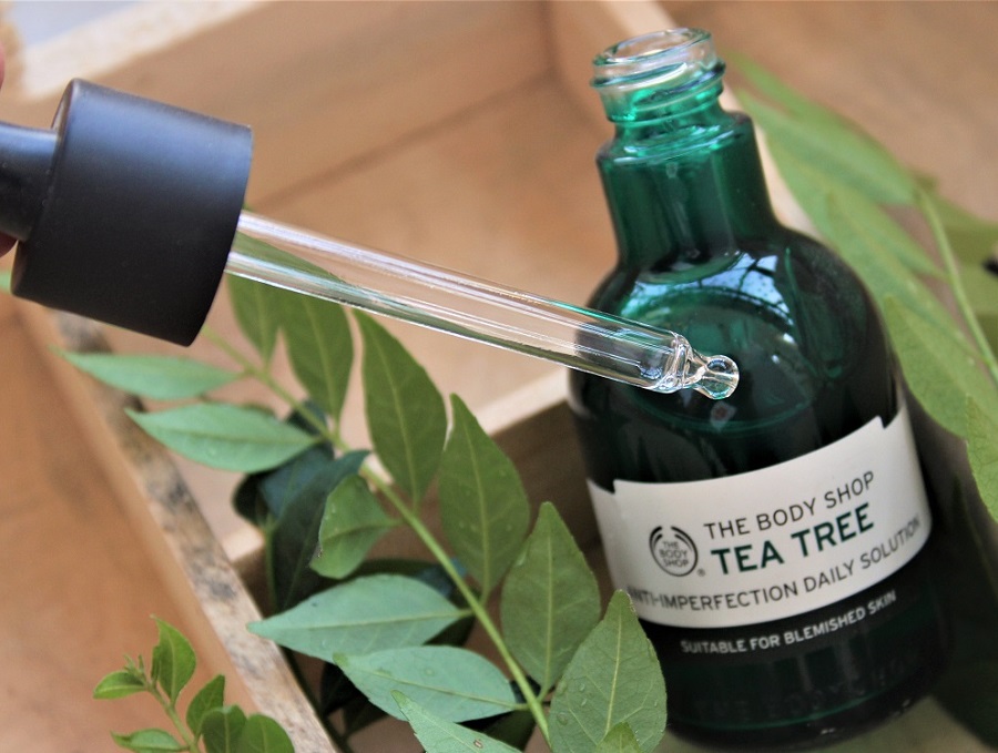 سرم روزانه بادی شاپ دارای روغن درخت چای و فرمولاسیون منحصر به فرد است. این روغن با خاصیت ضد باکتریال پوست صورت را سم زدایی کرده و درجهت شفاف نمودن آن تاثیر بسزایی دارد.