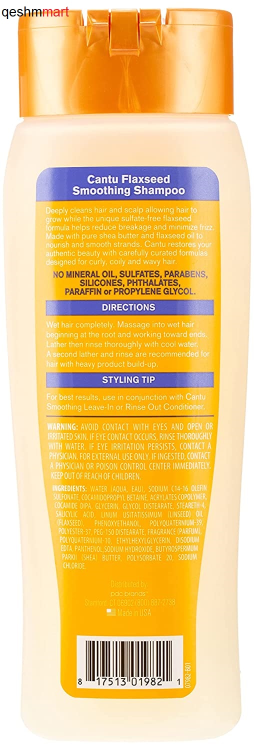 شامپو پاک کننده عمیق موهای فر و مجعد روغن کتان کانتو Cantu Flaxseed حجم 400 میلی لیتر