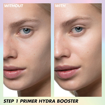پرایمر Hydra Booster میکاپ فور اور می تواند ظاهر پر رنگ و قهوه ای لک های پوستی را کاهش دهد تا کمرنگ و یکدست به نظر برسند.