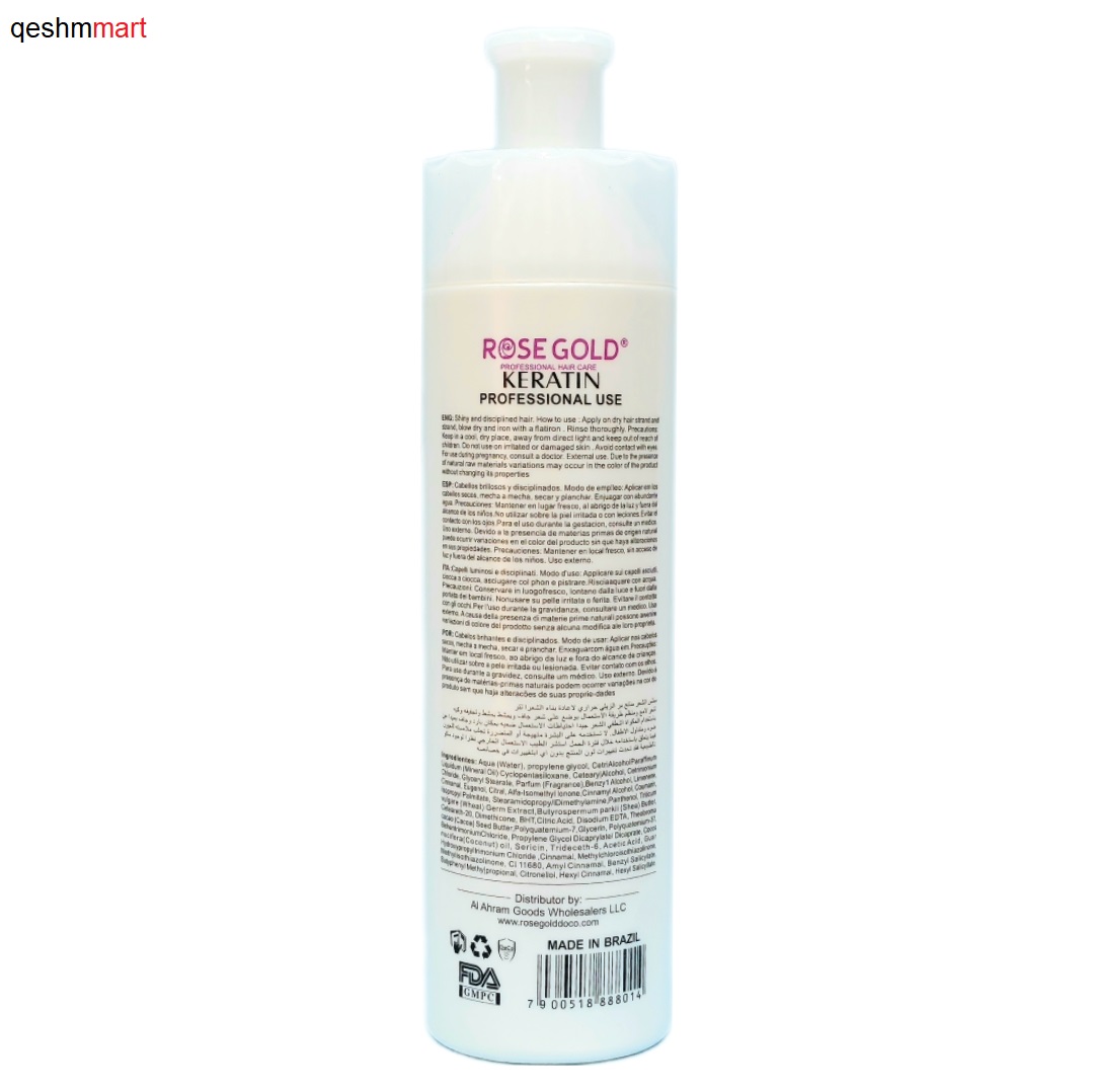 این محصول برای انوع موهای ظریف و آسیبدیده در اثر رنگ و دکلره کاربرد دارد. این محصول حاوی موادی است که مو را تا حدودی احیا میکند. کراتین رزگلد سفید به ترمیم مو کمک میکند و موجب براقیت مو میشود. این محصول موجب براقیت و منظم شدن موها میشود. صافی این محصول بینظیر بوده و در صورت استفاده درست از این محصول، ماندگاری آن تا یک سال خواهد بود. در غیر این صورت ۸ ماه ماندگاری تخمین زدهمیشود.