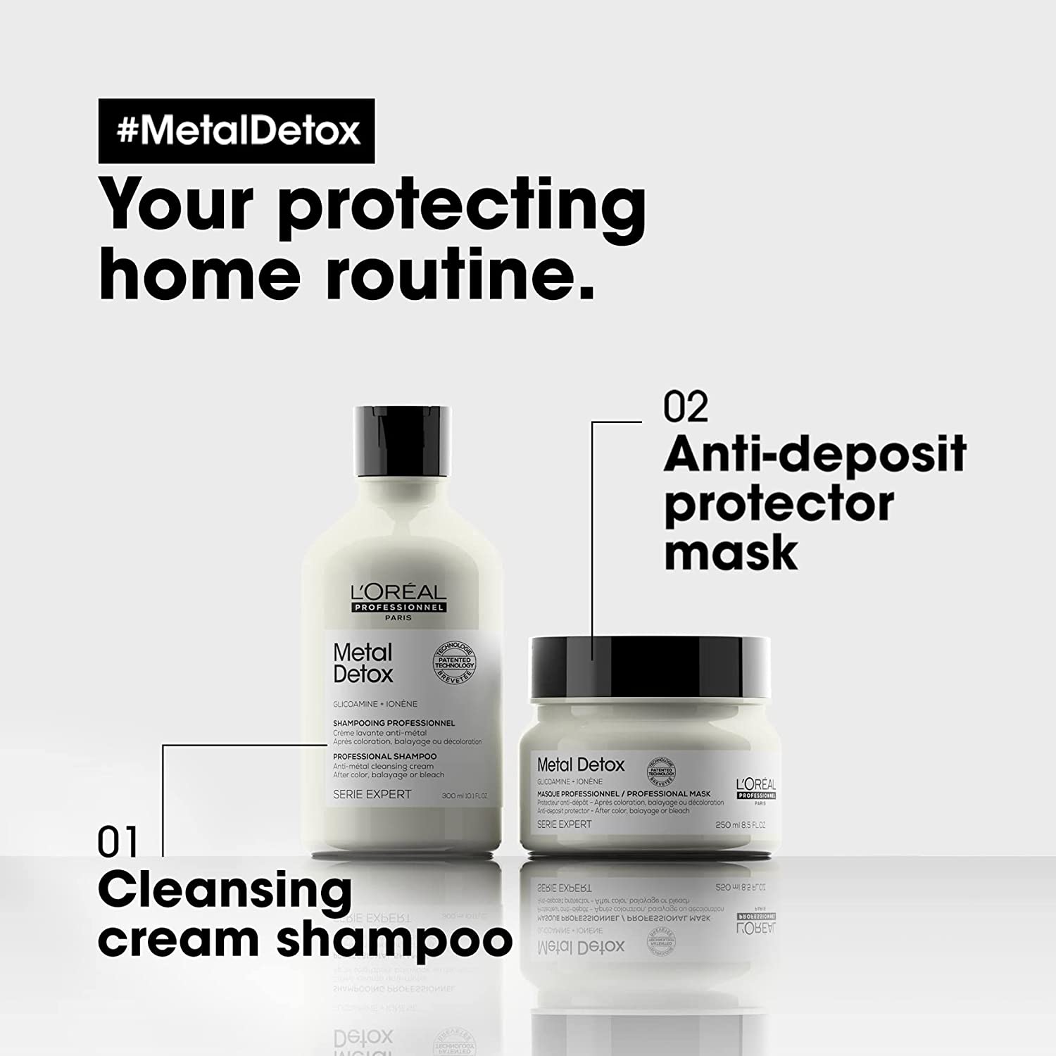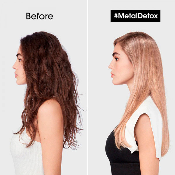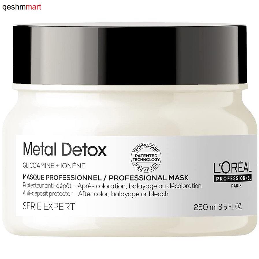 ماسک موی سم زدای فلزات لورال متال دیتوکس LOreal Metal Detox دارای فرمول پیشرفته و اختراعی لورال برای خنثی کردن فلزاتی است که در شستشوهای مختلف در فیبر مو ته نشین شده اند و باعث شکنندگی و کدر شدن رنگ مو می شوند. مقدار فلزات موجود در فیبر تارهای مو بستگی به میزان تخلخل سطح مو و کیفیت آبی که موها را می شوییم متفاوت است، آب های سخت باعث تجمع و ته نشین شدن فلزات از جمله مس در میان منافذ تارهای مو می شوند، در نتیجه موها کیفیت خود را به تدریج از دست می دهند، شکننده، زبر و کدر می شوند. علاوه بر این، فلزات موجود در فیبر مو باعث می شوند در هنگام رنگ کردن، بالیاژ و دکلره موها دچار شکنندگی شوند و به رنگ موی دلخواه و کیفیت مطلوب نرسیم.
