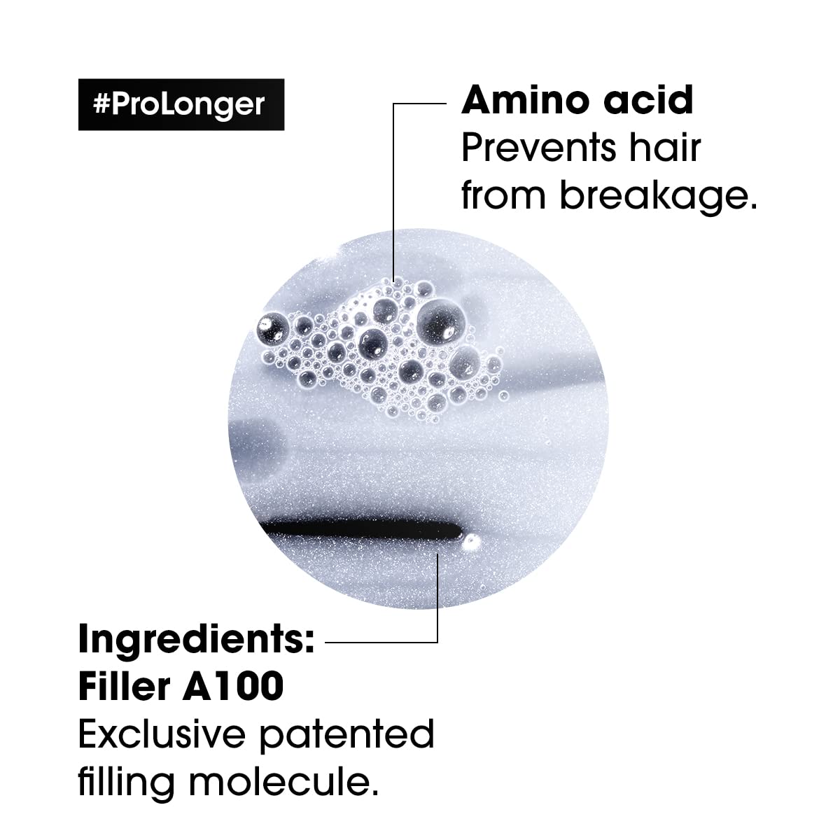 شامپو ترمیم کننده موهای بلند لورال سری اکسپرت LOreal Pro Longer دارای فرمول پیشرفته با الهام از فناوری درمانی و مراقبت از پوست لورال و مواد موثر باکیفیت برای نوسازی موهای بلند، افزایش ضخامت و انعطاف پذیری موها و ترمیم انتهای نازک و آسیب دیده موهای بلند می باشد. شامپو پرو لانگر لورال پروفشنال حاوی فناوری اختراعی فیلر Filler A100 برای پرکردن منافذ آسیب دیده و تخلخل های موهای شکننده به منظور افزایش ضخامت و ایجاد سطح یکدست فیبر مو است که باعث کاهش شکنندگی، سطح بندی مجدد و افزایش انعطاف پذیری موها می شود. این ترکیب همچنین حاوی آمینواسید های استحکام بخش و احیاکننده سلامتی موها است و موهای بلند زیبا و درخشان را به ارمغان می آورد.