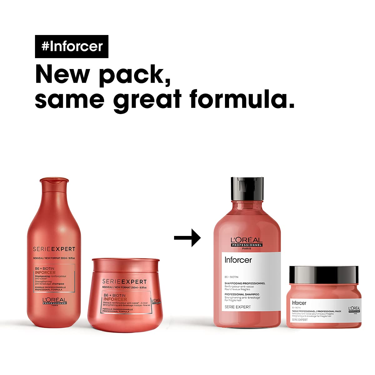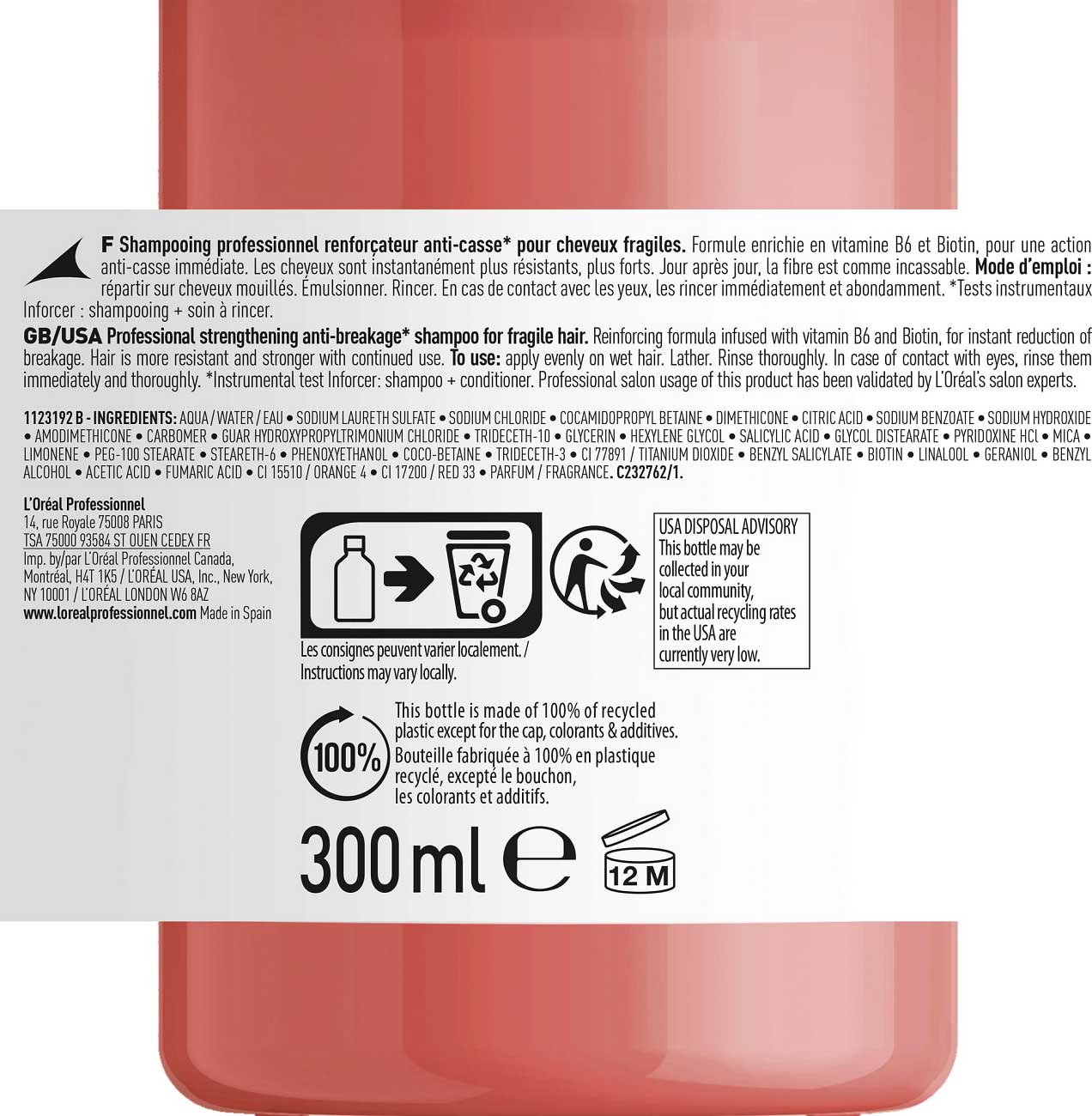 شامپو استحکام بخش و ضد شکنندگی موی لورال سری اکسپرت LOreal Inforcer دارای فرمول پیشرفته سالنی با الهام از فناوری درمانی و مراقبت از پوست لورال و مواد موثر باکیفیت از جمله کمپلکس ویتامین B6 و بیوتین (ویتامین B7) جهت استحکام بخشی موهای شکننده و کاهش شکنندگی موها می باشد. موها به علت عوامل محیطی مانند شانه کردن دچار شکنندگی می شوند، کمپلکس ویتامین B با فرمول حرفه ای اکسپرت لورال ضمن ترمیم آسیب دیدگی و شکنندگی موها به ویژه موهای بلند، از دوشاخه شدن موها در اثر کمبود مواد مغذی و خشکی جلوگیری می کند. این ترکیب همراه با افزایش استحکام تارهای مو، با تغذیه عمقی موجب لطافت بخشی و درخشندگی زیبای موهای سالم و منعطف می شود.