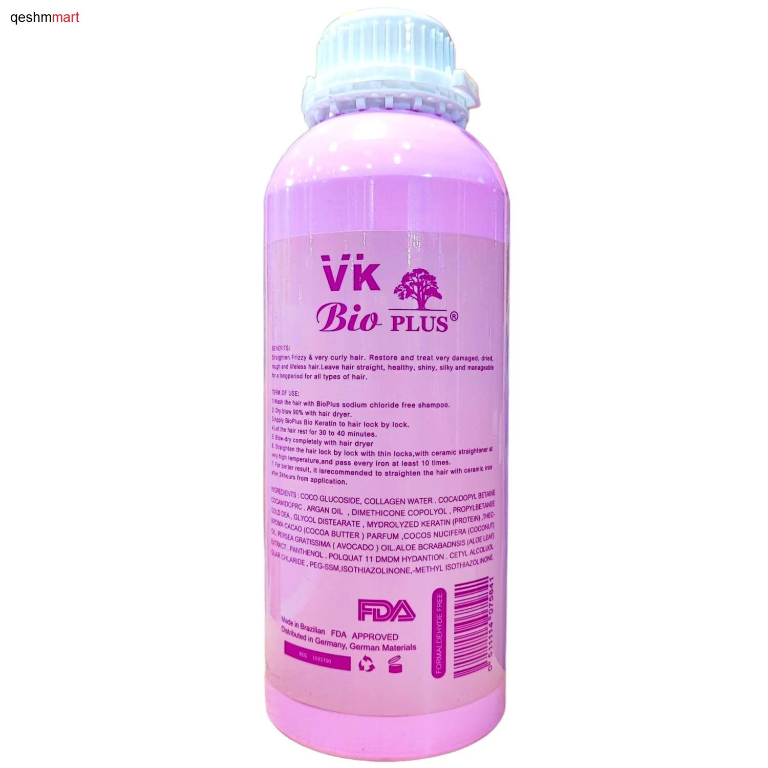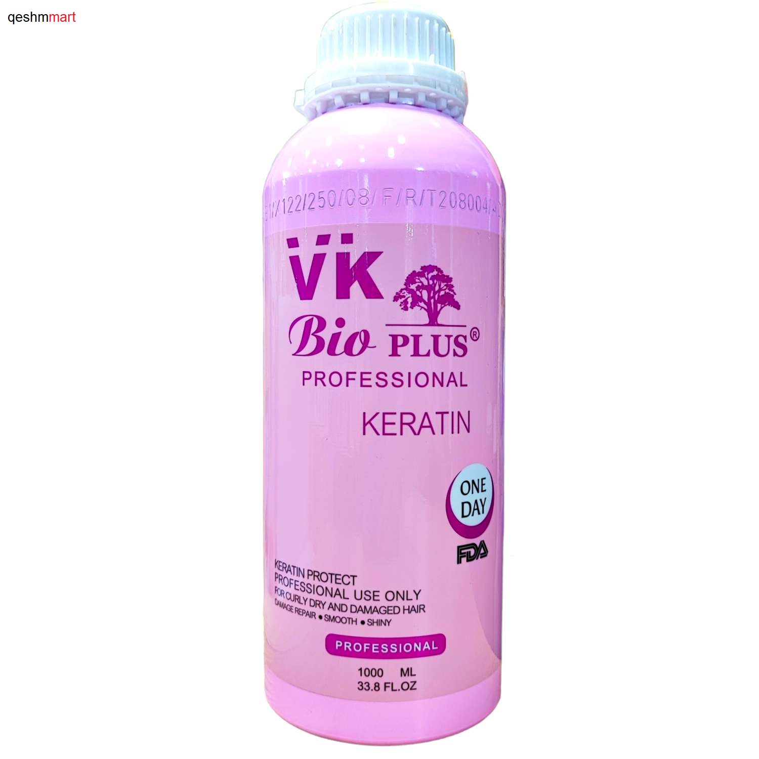 کراتین وی کی بیو پلاس با حجم ۱۰۰۰ میل برای محافطت از مو های خشک و آسیب دیده و استفاده ی حرفه ای می باشد. این محصول آسیب هایی که به مو های شما وارد شده است را بازسازی و ترمیم می کند و همینطور کراتین Vk BioPlus باعث صاف شدن مو های شما می شود.