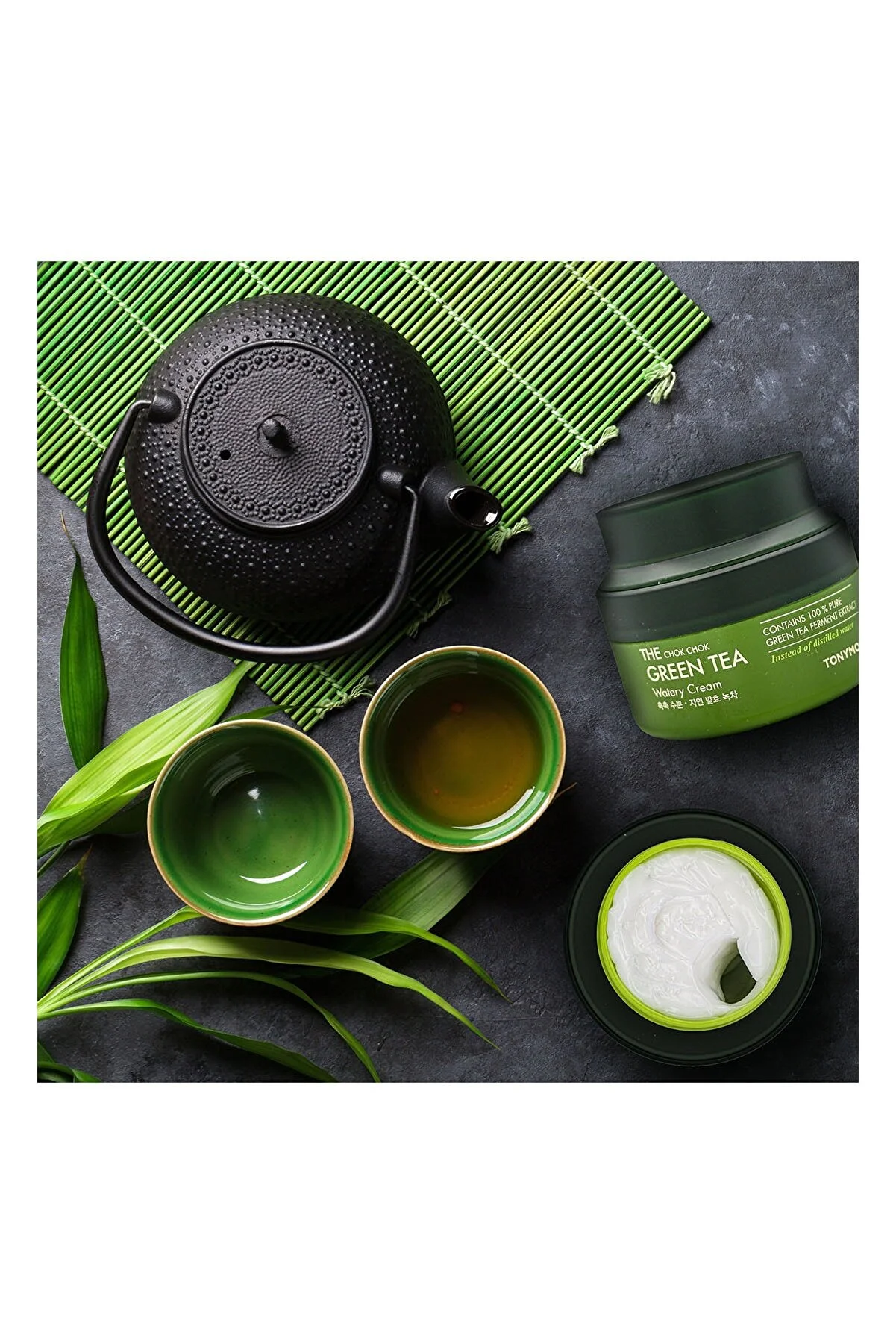 - عصاره چای سبز تخمیر شده خالص - چای سبز تخمیر شده طبیعی با مزایای آنتی اکسیدانی و مرطوب کنندگی بالا برای پوست، بسیار بیشتر از چای سبز تازه. انحصاری جهانی TONYMOLY.