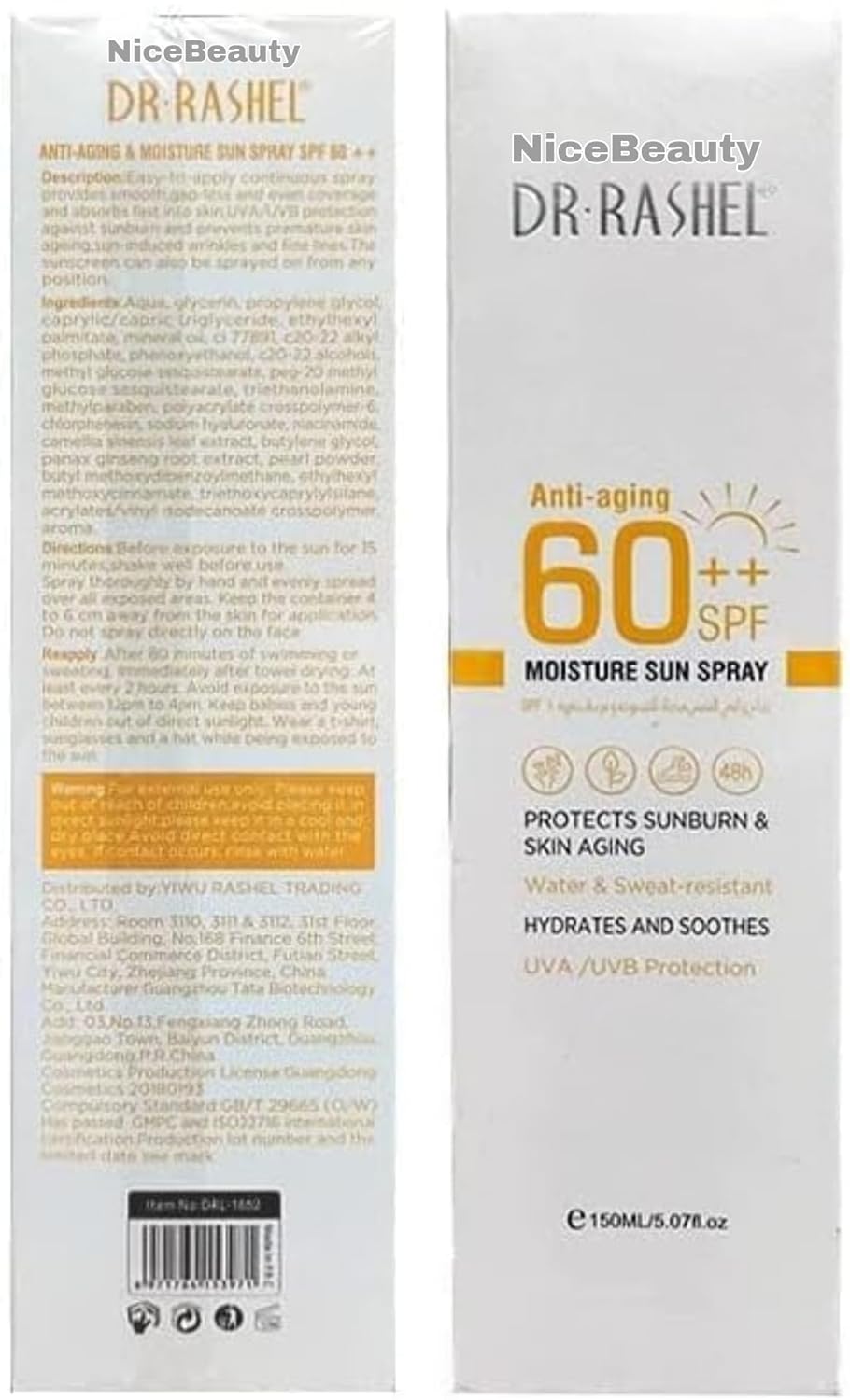 اسپری ضدآفتاب مرطوب کننده و ضدپیری دکترراشلspf60