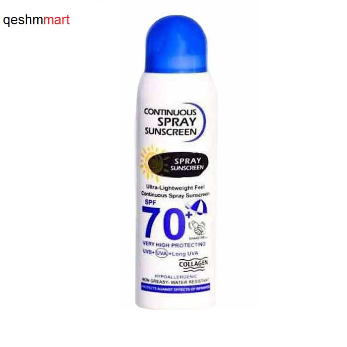 اسپری ضد آفتاب وکالی SPF 70 ( آبی) با حجم 23 میل، حاوی آلوئه ورا و کلاژن می باشد و از پوست در برابر پرتوهای UVB+UVA محافظت می کند و روی پوست حالت چربی ایجاد نمی کند و خاصیت مرطوب کنندگی و آبرسانی دارد.