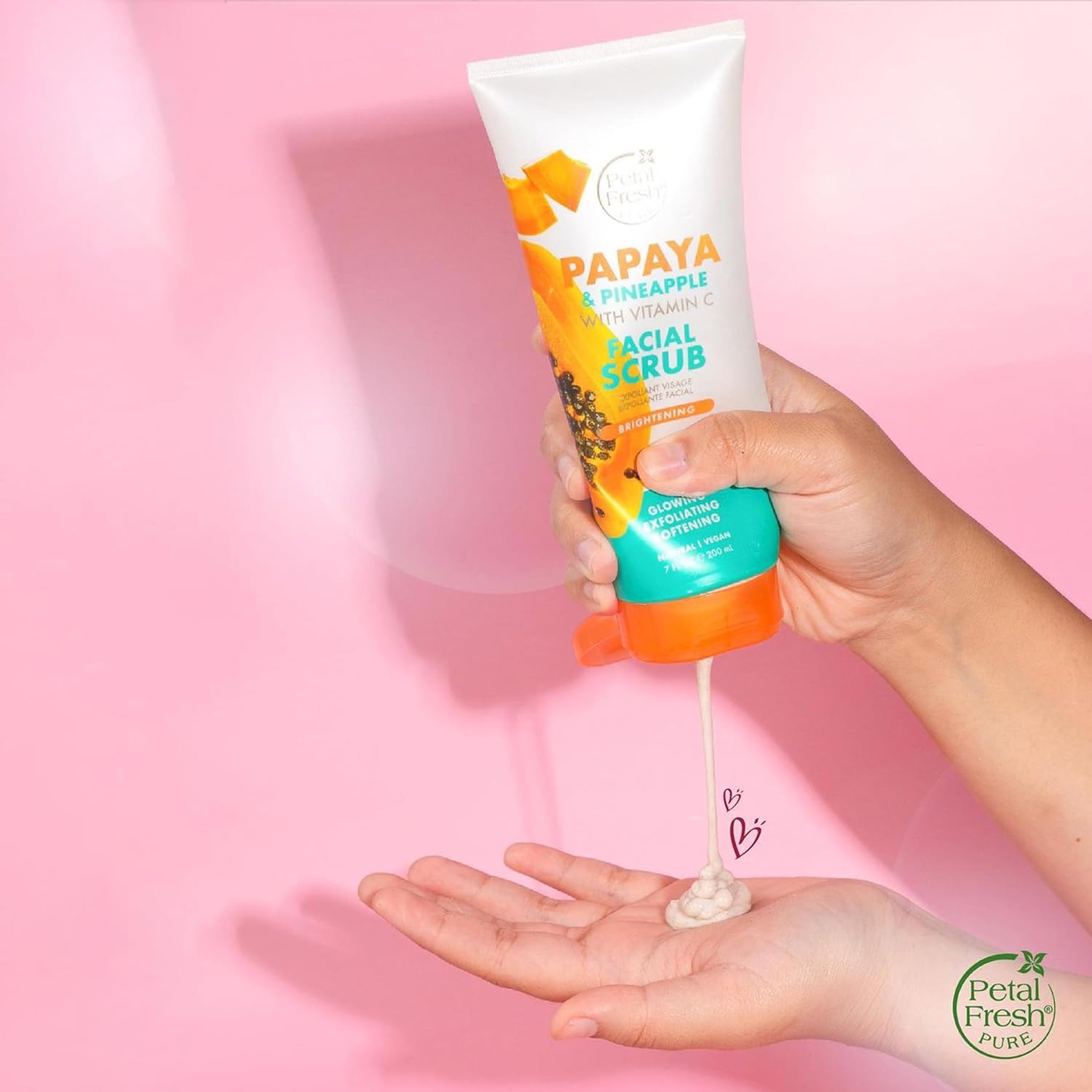 اسکراب روشن کننده صورت پاپایا و آناناس پتال فرش Petal Fresh Papaya Scrub حجم 200 میلی لیتر