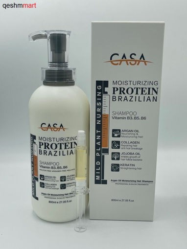 شامپو پروتئین کاسا حجم ۸۰۰ میلی لیتر حاوی پروتئین ،کراتین ، روغن آرگان، روغن جوجوبا و کلاژن می باشد. موها را نرم و ابریشمی می کند. و در تثبیت کراتین مو نیز بسیار حائز اهمیت می باشد.