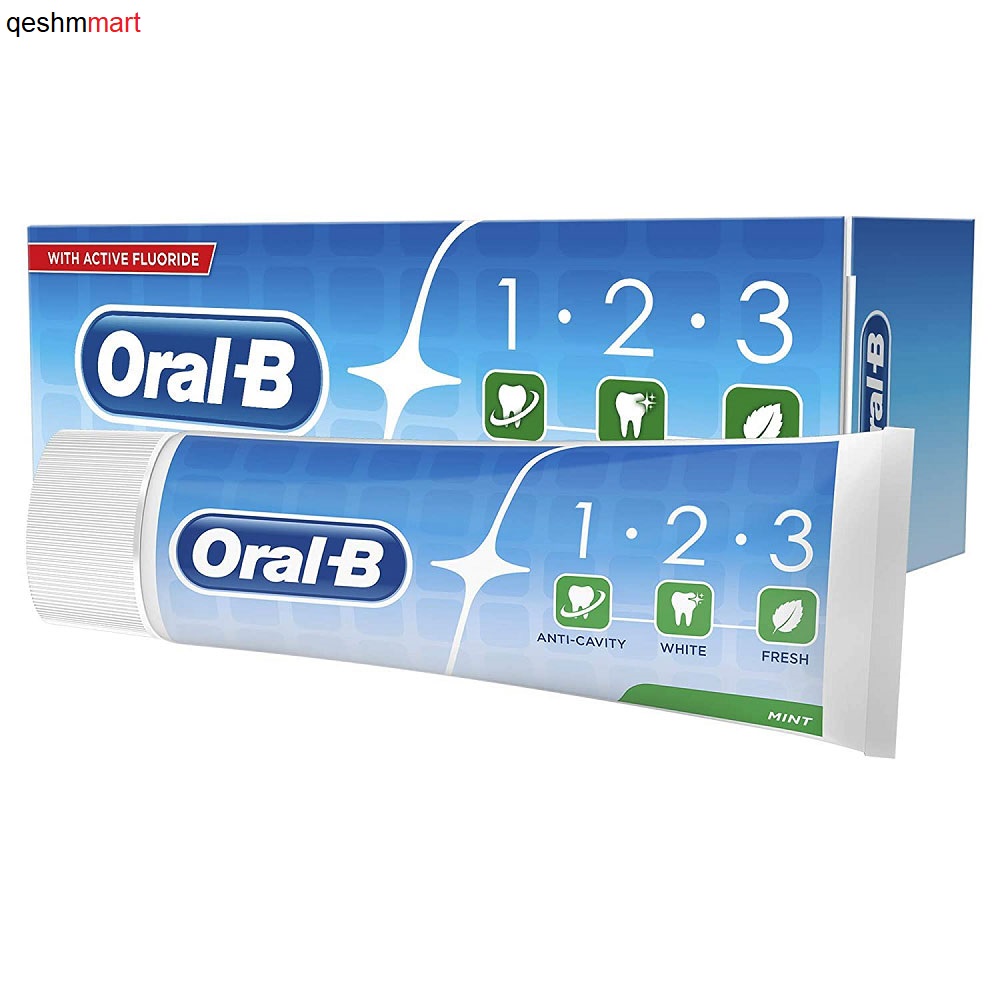 خمیردندان سه کاره اورال بی Oral B 123 Mint دارای عملکرد سه گانه ضد پوسیدگی، سفیدکننده و تازگی بخش تنفس می باشد. خمیردندان 123 اورال بی حاوی عصاره نعناع برای خنک کنندگی و تازگی بخشی دهان و دندان به همراه 1450ppm فلوراید برای محافظت در برابر پوسیدگی دندان ها است.