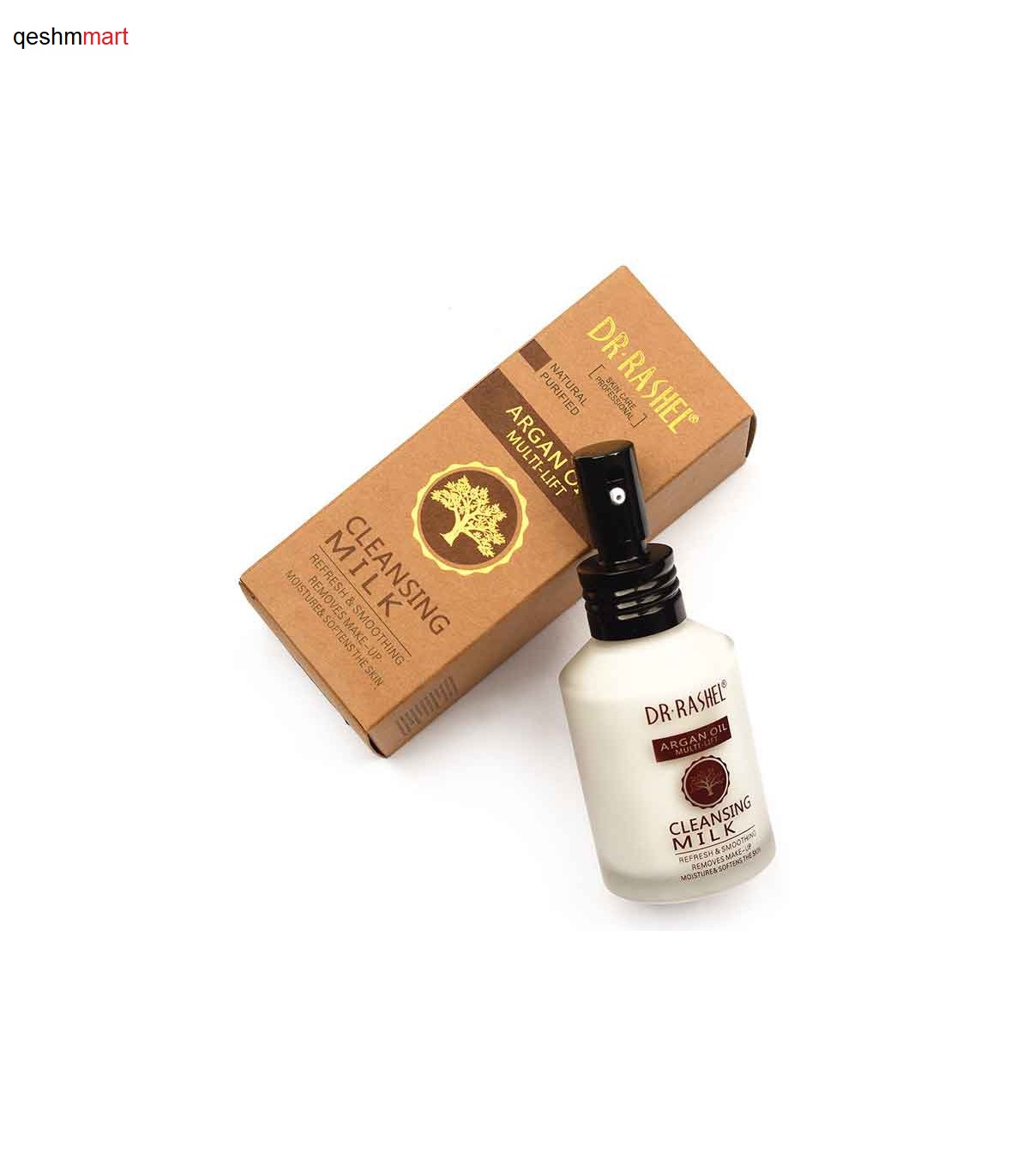 لوسیون پاکسازی پوست عصاره روغن آرگان دکتر راشل DR.RASHEL با حجم ۶۰ میلی لیتر حاوی روغن آرگان از برند دکتر راشل می باشد. این محصول سرشار از عصاره روغن آرگان است که با نفوذ عمیق به بافت پوست باعث ایجاد بافتی نرم و مخملی در پوست شما می شود همینطور تمامی مواد آرایشی را از منافذ پوست شما خارج کرده و پوست شما را پاکیزه و تمیز می کند. دیگر ویژگی های لوسیون DR.RASHEL تغذیه کننده و آبرسان پوست و همچنین کنترل کننده میزان چربی پوست شما است.
