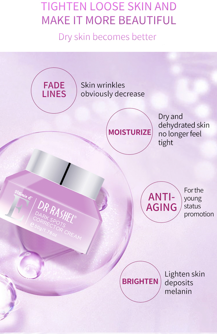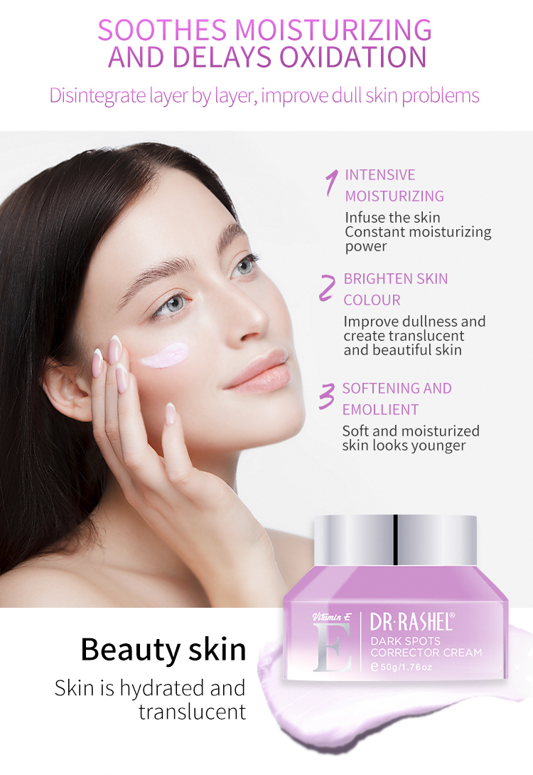 کرم اصلاح کننده لکه های تیره ویتامین E دکتر راشل که به مرطوب کردن و محافظت از پوست کمک می کند و در عین حال با آسیب رادیکال های آزاد مبارزه می کند. ویتامین E یک مرطوب کننده طبیعی، آنتی اکسیدان و ویتامین شفابخش است که از اسیدهای چرب پوست محافظت می کند و با رادیکال های آزاد مبارزه می کند. این فرمول به سرعت جذب می شود تا پوست را محافظت کند، رطوبت از دست رفته را جبران کند، نرم و تسکین دهد