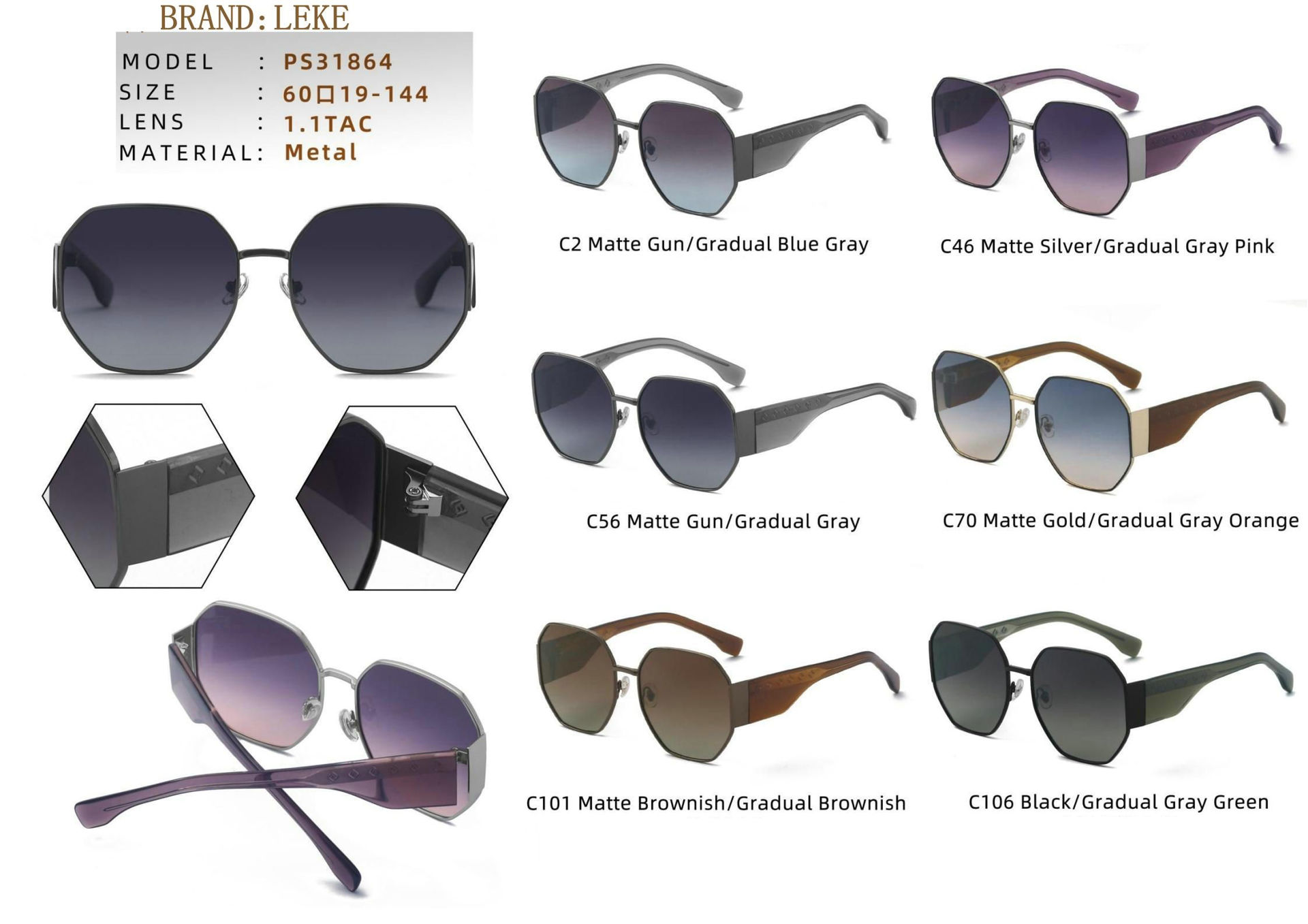 عینک آفتابی زنانه leke lk1864 C46