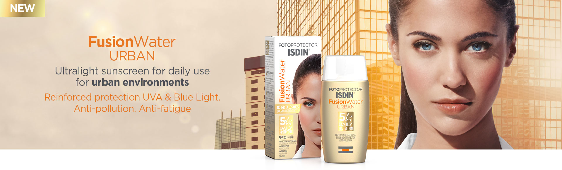 ضد آفتاب فیوژن واتراوربن SPF 30 ایزدین (Isdin Fotoprotector Fusion Water Urban SPF 30) محصولی از برند اسپانیایی ISDIN میباشد. ضد آفتاب Urban ایزدین بر پایه آب است و دارای بافت بسیار سبک است. به دلیل بافت بسیار سبک سریع جذب پوست شده و احساس سنگینی ایجاد نمیکند. ضد آفتاب Fusion Water Urban ایزدین حاوی عصاره زنجبیل، gingerol و shogaol است که به خوبی نقش یک آنتی اکسیدان بسیار قوی را ایفا کرده و اکسیداتیو ناشی از نور آبی را کاهش میدهد. این ضد آفتاب دارای تکنولوژی Safe Eye است که به راحتی میتوانید در اطراف دور چشم از آن استفاده کنید و باعث ایجاد تحریک و سوزش در اطراف چشم نمیشود. تکنولوژی Wet Flex بهکار رفته در این ضد آفتاب قابلیت استفاده از آن را برای پوستهای خیس و مرطوب هم فراهم کرده است.