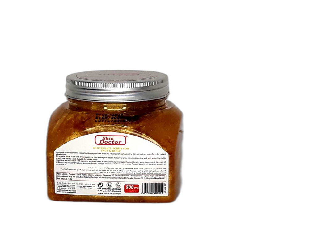 اسکراب سفید کننده طلا دکتر اسکین به آرامی و بدون هیچ عوارض جانبی لکه های پوست را از بین میبرد و پوست را سفت میکند. این اسکراب باعث انعطاف پذیری بیشتر پوست شده و به گردش خون کمک می کند. و باعث درخشش و شفافیت پوست می شود. و پوستی عاری از هر گونه آلودگی و چربی به شما هدیه میدهد. دارای ترکیباتی از آنتی باکتریال و ضد التهابی است که باعث تسکین و پاک کنندگی پوست میشود.