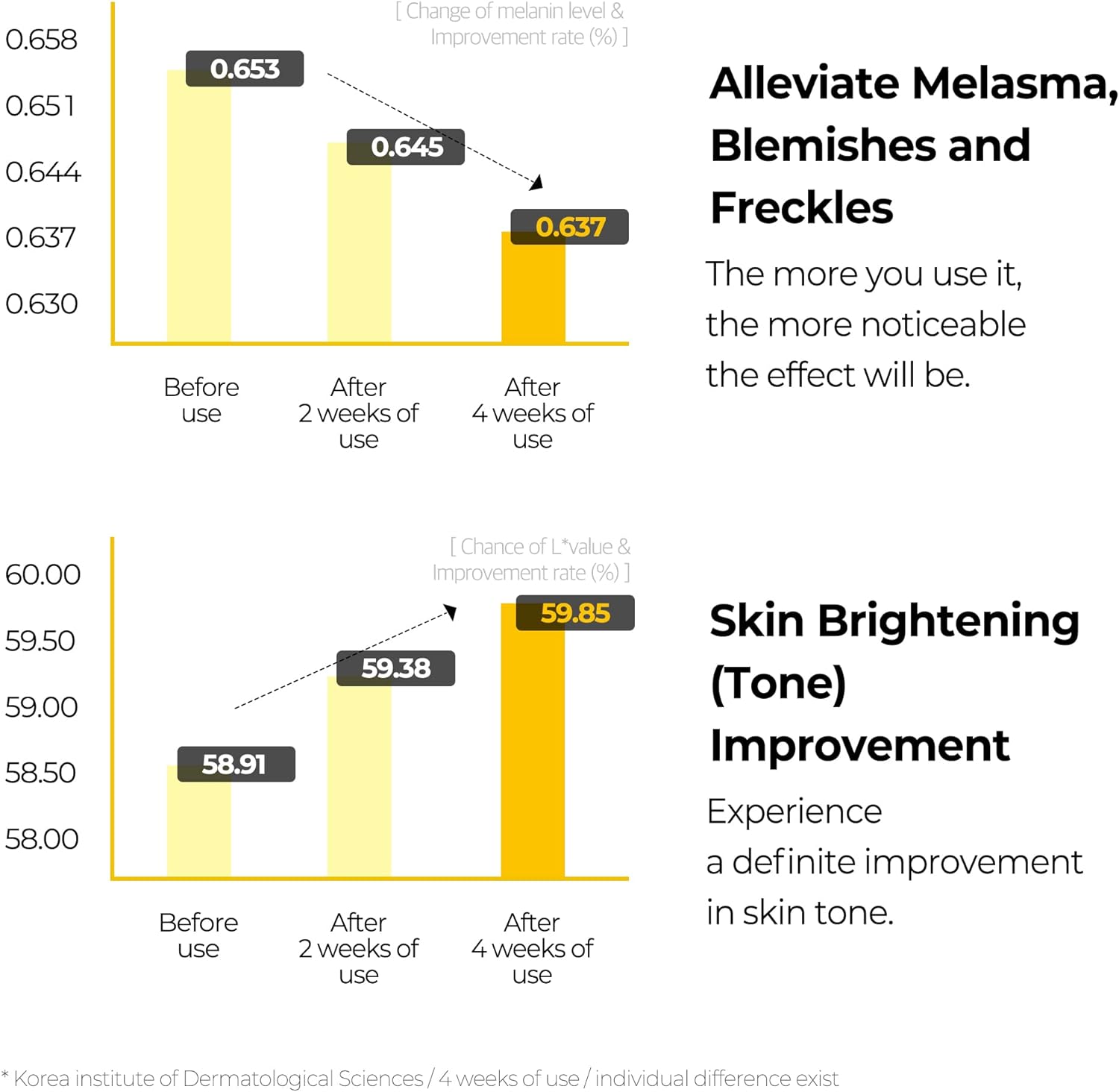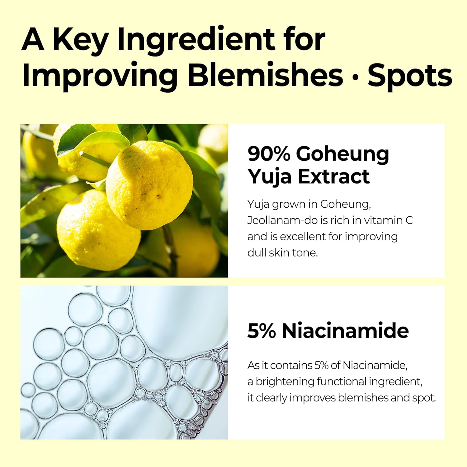 این تونر حاوی 90% عصاره یوجا است که به افزایش درخشش و روشنایی پوست کمک کرده و سبب کم رنگ تر شدن لک های پوستی می شود. همچنین حاوی 5% نیاسینامید است که به کاهش چین و چروک های پوستی کمک می کند و از پوست در برابر رادیکال های آزاد محافظت می کند.
