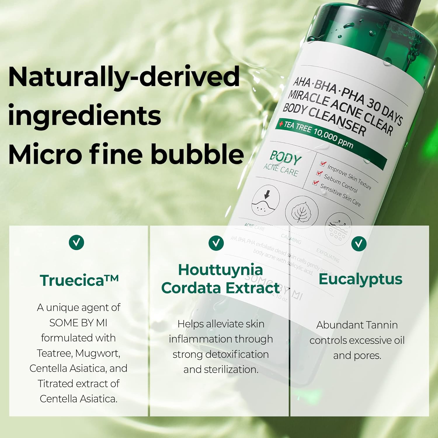 شوینده بدن سام بای می، یک شوینده ضد جوش بدن است و حاوی اسید های لایه بردارAHA، BHAو PHA بوده که سلول های مرده پوست را با ملایمت از بین میبرد.