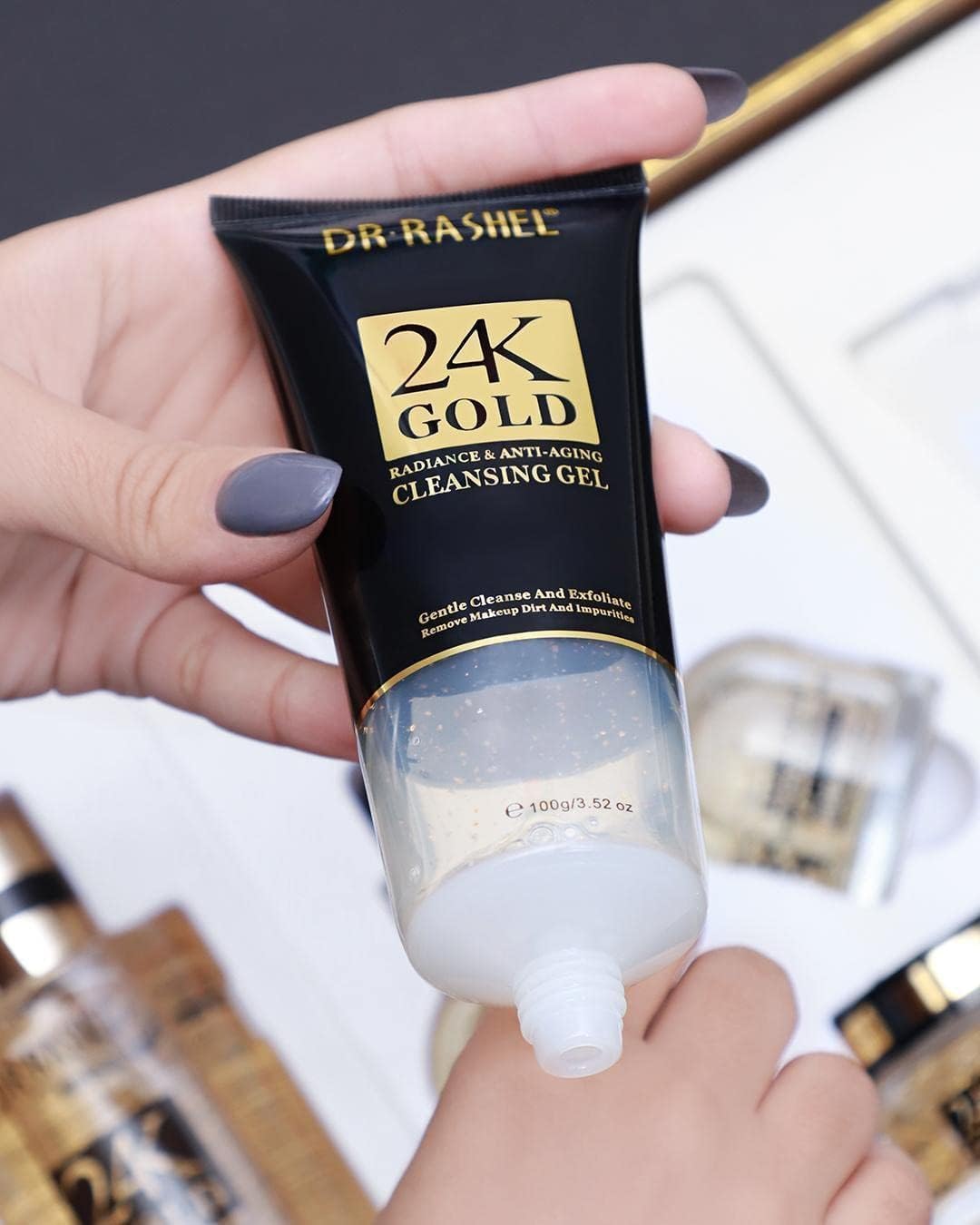 ژل شستوشوی لوکس و با ارزش حاوی طلا خالص به آرامی پوست را کاملا تمیز و لایه برداری میکند و سپس باعث روشن شدن و رفع لک ها و همچنین پرشدن خطوط صورت میشود و چروک های صورت را محو میکند.