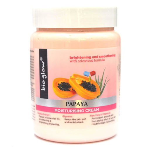کرم مرطوب کننده پاپایا بیو گلو باعث کاهش لک، و رفع تیرگی پوست میشود.