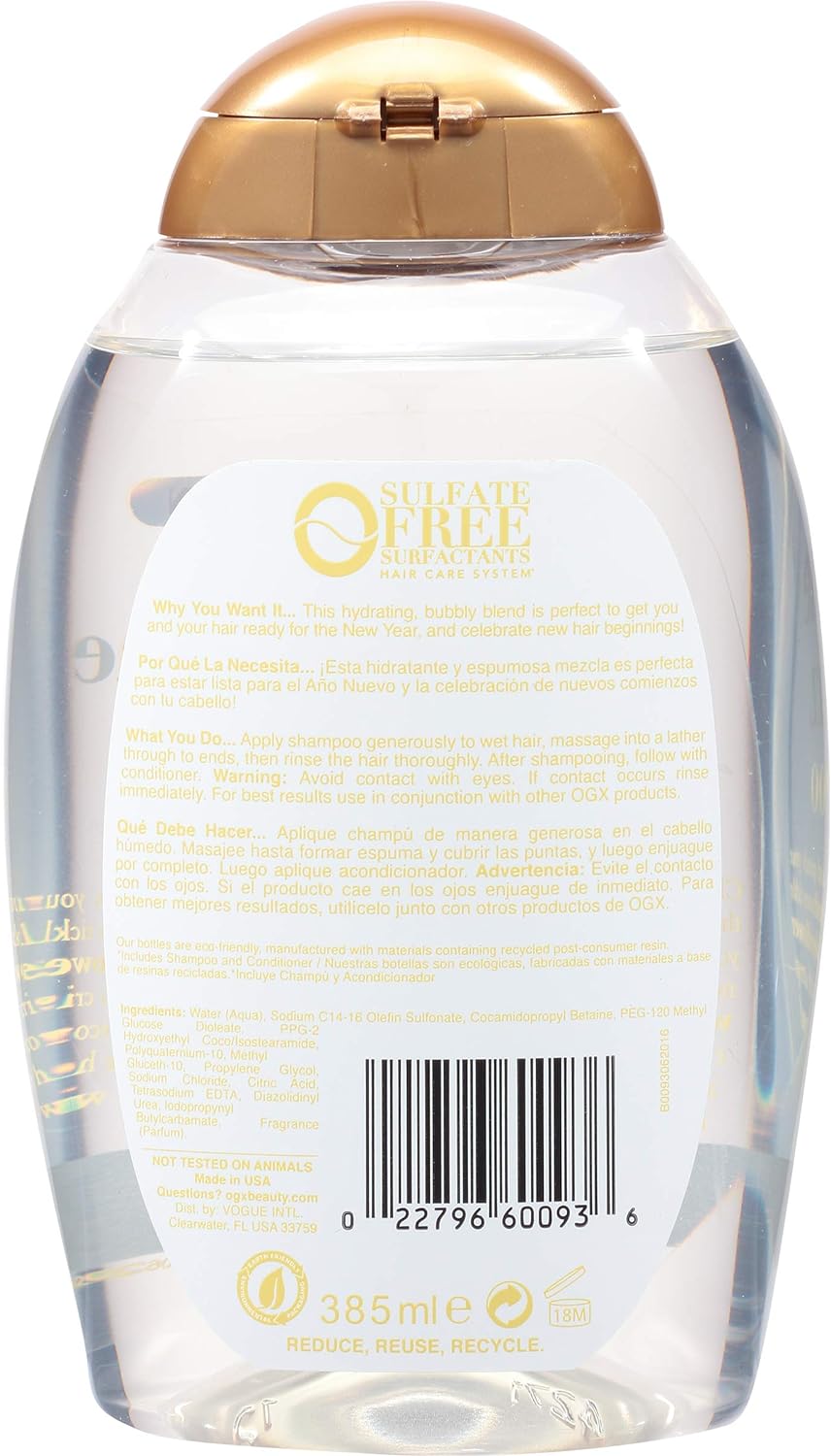 شامپو آبرسان او جی ایکس Ogx Opulent Hydration دارای فرمول مجلل با رایحه دلپذیر برای آبرسانی انواع مو و رفع علائم تشنگی موهای دهیدراته می باشد. شامپو آبرسان او جی ایکس حاوی رایحه نت های گریپ فروت، گل درختچه الدر بری و انگور سفید است و احساس شادابی و سرزندگی موهای تازه و رطوبت رسانی شده را به ارمغان می آورد.