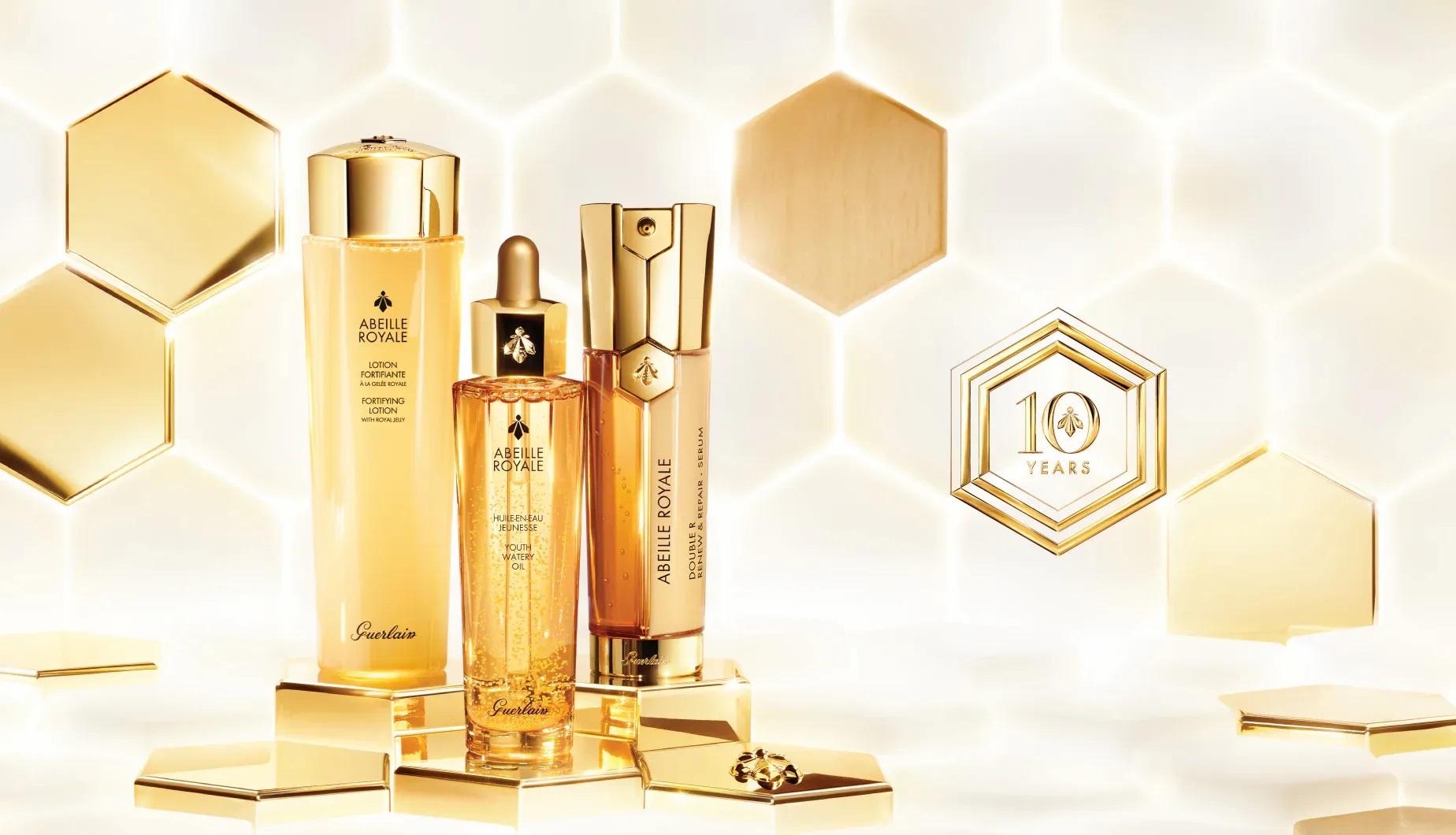 سرم جوان کننده گرلن Guerlain Abeille Royale محصولی باکیفیت و دارای فرمول انحصاری گرلن جهت طیف گسترده ای از عملکردهای جوان کننده صورت از جمله تغذیه کنندگی، آبرسانی، فربه کنندگی، هموار کنندگی و روشن و شفاف کنندگی پوست می باشد. سرم جوانی گرلن حاوی عسل بدست آمده از زنبور عسل سیاه واقع در جزیره یوشانت فرانسه به همراه رویال ژل زنبور عسل سیاه با خواص بازسازی کنندگی ساختار پوست می باشد. این ترکیب حاوی فناوری میکرو ذرات روغن مغذی و ترمیم کننده درخت بلسان کپسوله شده در سرم جهت اثر بخشی فوری هنگام استفاده می باشد.