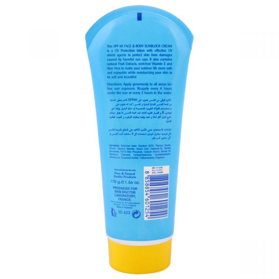 کرم مرطوب کننده و ضد آفتاب اسکین دکتر Skin Doctor SPF 60 Sunblock Cream for Body and Face (170ml)