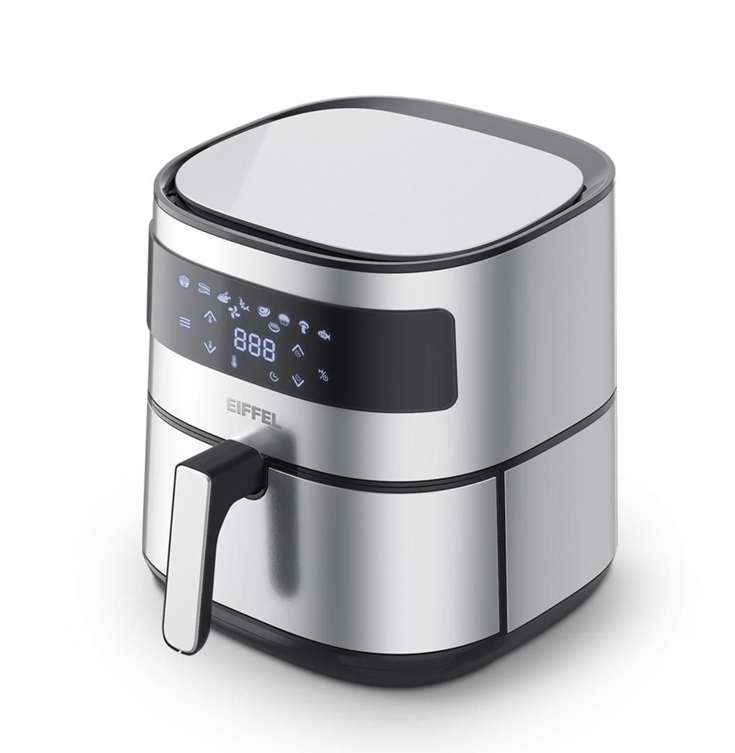 میتوانید با لمس چند دکمه، یکی از 8 برنامه پیش فرض سرخکن ایفل را فعال کنید و نهار یا شام دلخواه خود را با سرعت و کیفیتی بالا آماده کنید. تنها کافی است از میان انواع گوناگون غذاها مانند سیبزمینی سرخ شده، ناگت، مرغ، پیتزا، گوشت، ماهی، سبزیجات و دسر، یک یا دو مورد را به طور همزمان انتخاب کنید. سپس دستگاه به طور خودکار دما و زمان را برای هر برنامه تنظیم میکند و غذا در کوتاهترین زمان حاضر خواهد شد. سرخکن ایفل دارای یک سبد بزرگ به حجم 8 لیتر است که برای آمادهکردن غذا بهاندازه 10 نفر کافی است. امکانات و سرعت این سرخکن مثل داشتن یک دستیار حرفهای در آشپزخانه، آشپزی شما چندبرابر آسانتر از قبل میکند. مثلاً برای درست کردن ۷ عدد کاپ کیک کافی است ۱۵ الی ۱۸ دقیقه صبر کنید. یا در فصول مختلف میوهها را به صورت کاملا بهداشتی و سالم در زمانی کوتاه خشک کنید. با کمک این دستگاه سرخ کن، سبزیجات خشک شده معطر هم قابل تهیه هستند. داشتن یک سرخکن با ظرفیت بالا، امکان پخت و سرخکردن مواد غذایی مختلف بهصورت همزمان را برای شما فراهم میکند و باعث میشود نیازی به چندین ظرف یا تابه جداگانه نداشته باشید. در نتیجه برای آشپزی به زمان کمتری احتیاج خواهید داشت.