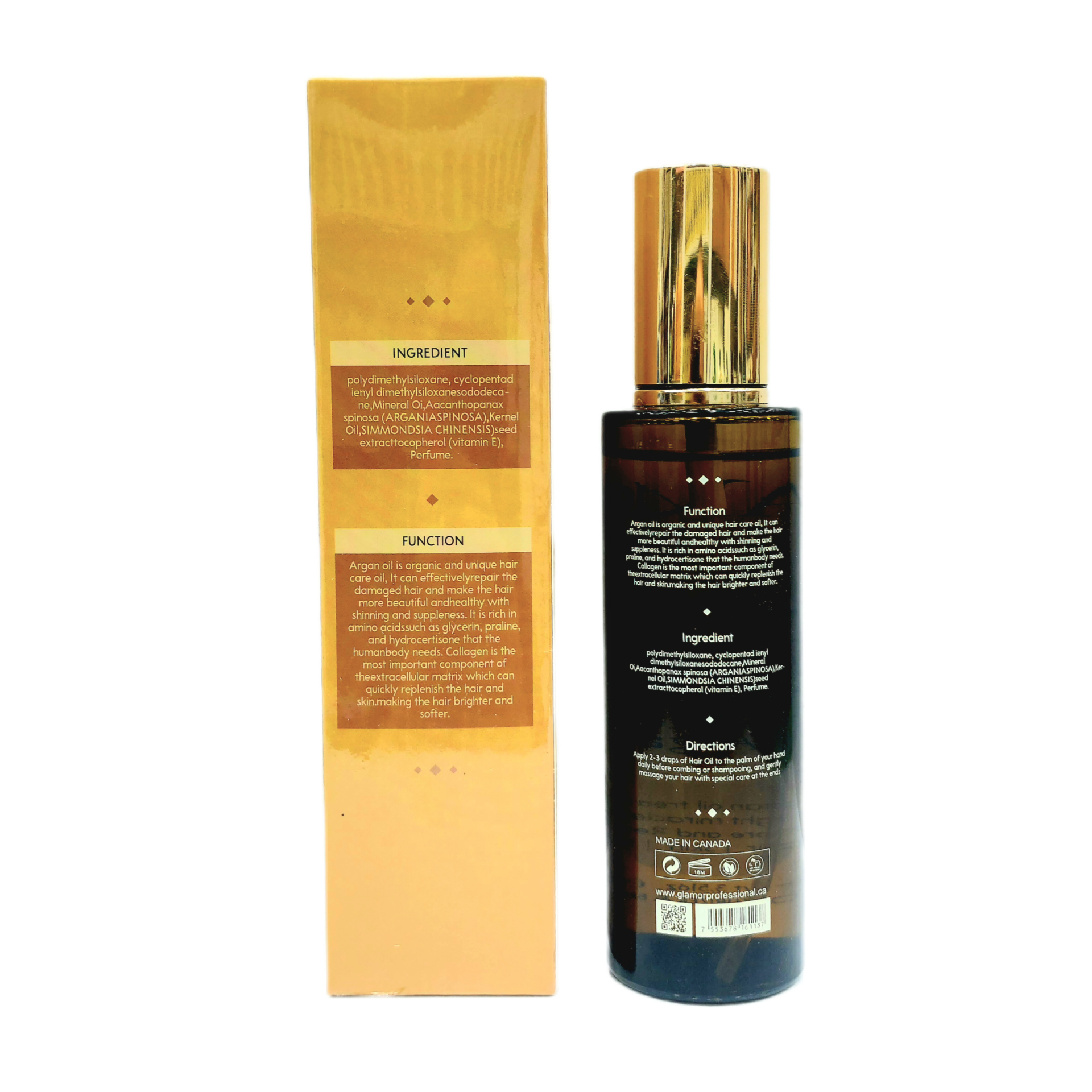 روغن آرگان گلامور یک روغن مراقبتی اورگانیک و منحصر به فرد برای مو میباشد. این روغن میتواند موهای آسیبدیده را به طرز شگفتانگیزی ترمیم کند و موها را زیباتر و سالمتر بسازد و همچنین براقیت و انعطافپذیری موها را افزایش دهد. روغن آرگان گلامور حاوی مواد مفیدی است که بدن به آنها نیاز دارد. کلاژن، مهمترین ترکیبی است که میتواند به سرعت حفرههای مو و پوست را پر کند و موها را براقتر و نرمتر بسازد.