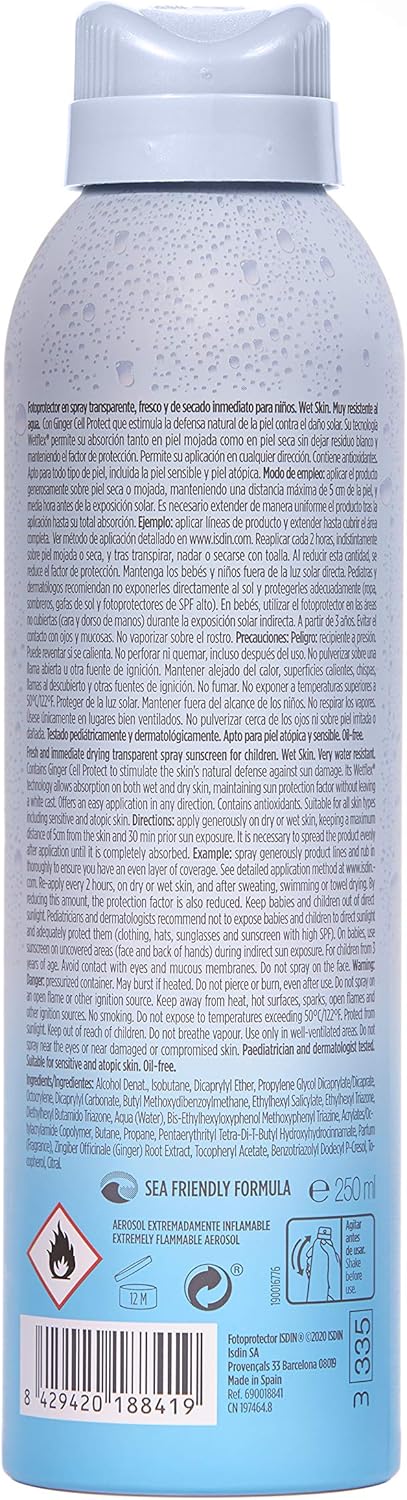 اسپری ضدآفتاب کودکان ایزدین Transparent دارای محافظت بالا در برابر اشعه های UVB و UVA است و به سرعت خشک می شود. حاوی عصاره گل توت است که سد پوستی را آرام و تقویت می کند. تکنولوژی Wet Skin امکان جذب آن را بر روی پوست مرطوب و خشک بدون باقی ماندن اثر سفیدی و حفظ فاکتور محافظتی فراهم می کند. این فرمول با ویتامین E و دکسپانتنول از پوست در برابر موانع بیولوژیکی محافظت می کند. مناسب برای انواع پوست از جمله پوست آتوپیک است و در برابر آب مقاومت دارد.