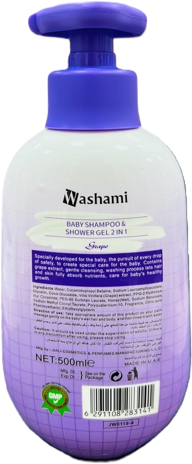 شامپو سر وشاور ژل بدن کودک واشامی حاوی عصاره انگور حجم 500 میلی لیتر