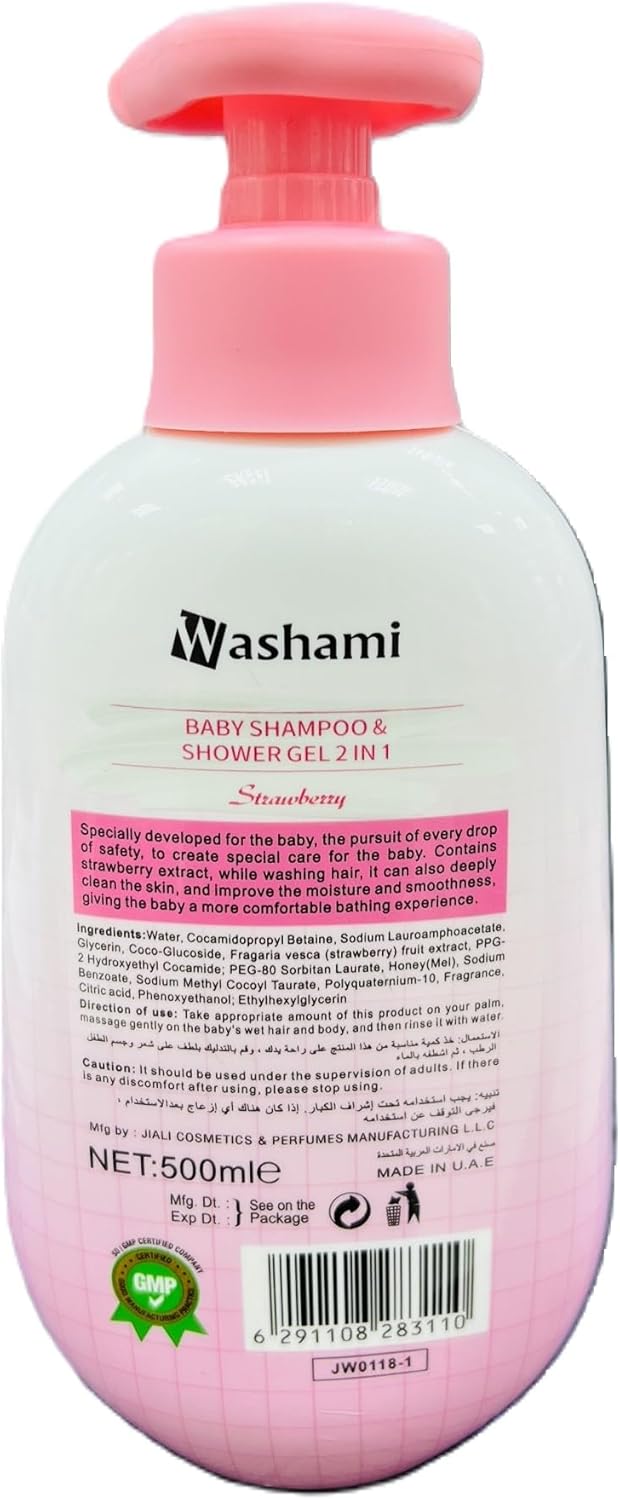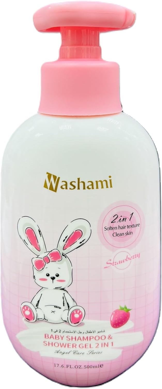 شامپو سر وشاور ژل بدن کودک واشامی با رایحه توت فرنگی حجم 500 میلی لیتر