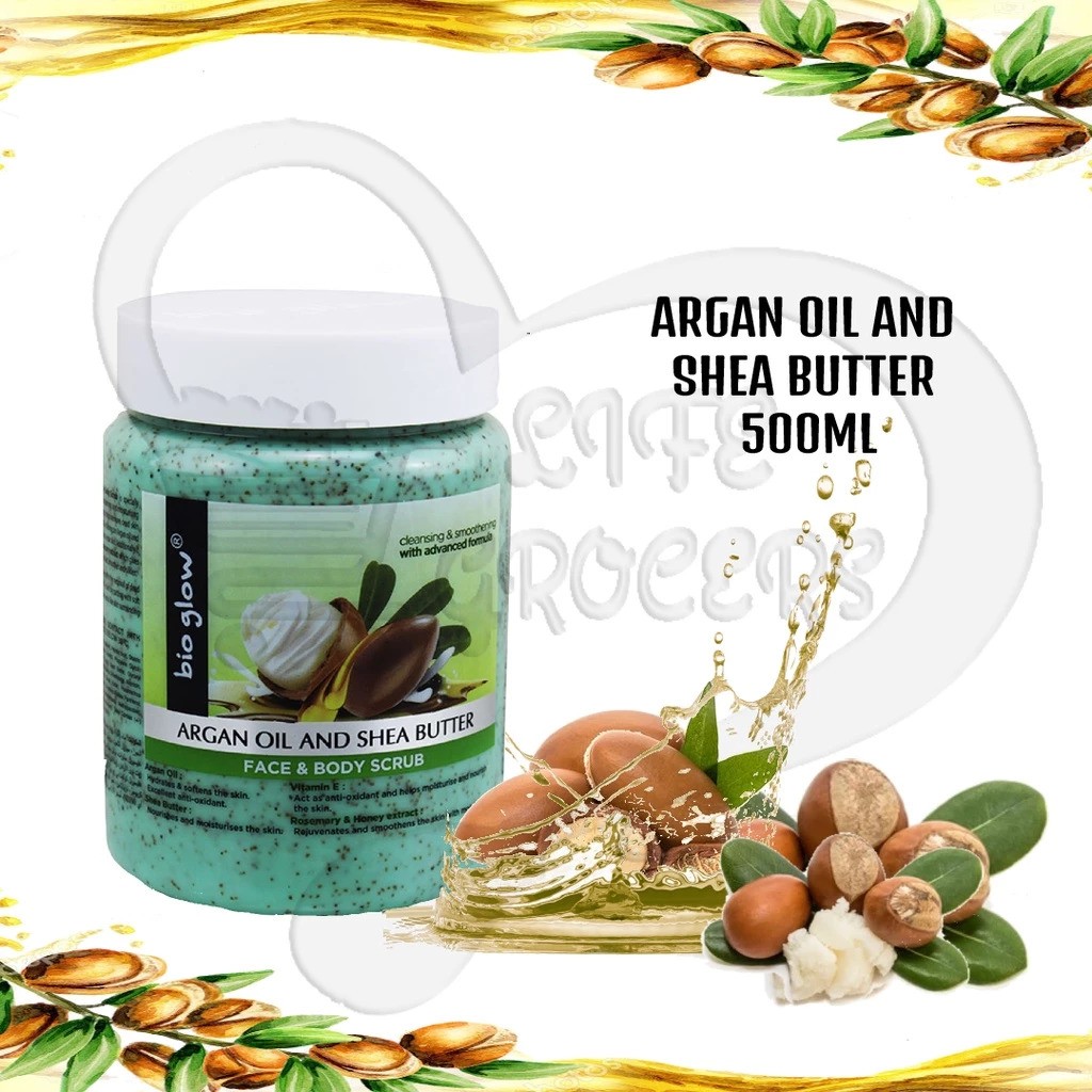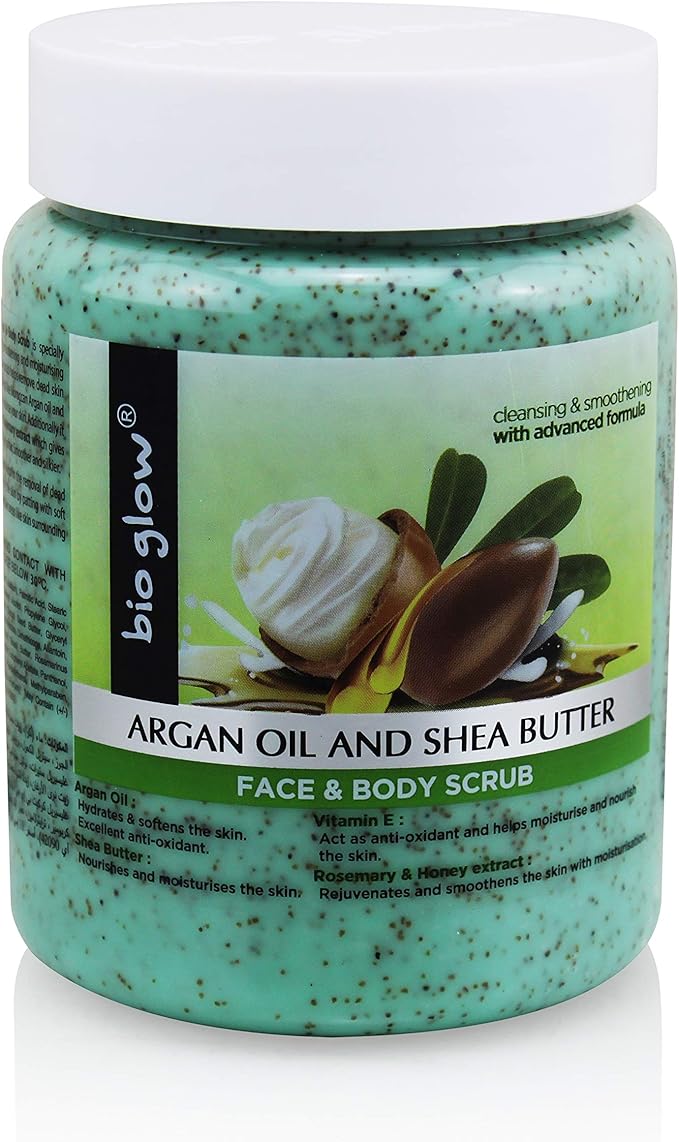 اسکراب صورت و بدن آرگان و شی باتر بیوگلو   Bio Glow Face and Body Scrub with Argan Oil and Shea Butter - 500 ml