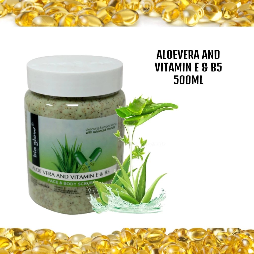 اسکراب صورت و بدن آلوورا و ویتامین B5 و E بیوگلو Bio Glow Aloe Vera, Vitamin E & B5 Face & Body Scrub