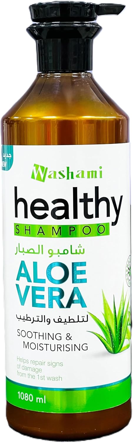 شامپو تسکین‌دهنده و مرطوب‌کننده آلوورا واشامی حجم 1080 میلی لیتر WASHAMI Healthy ALOE VERA SOOTHING & MOISTURISING SHAMPOO